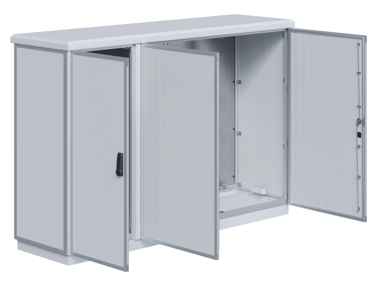 | Outdoor-Schaltschrank aus doppelwandigen Aluminiumprofilen mit EVU-Teil | 11111435 | 1.400 mm | 2.800 mm | 400 mm | Zu den Details |