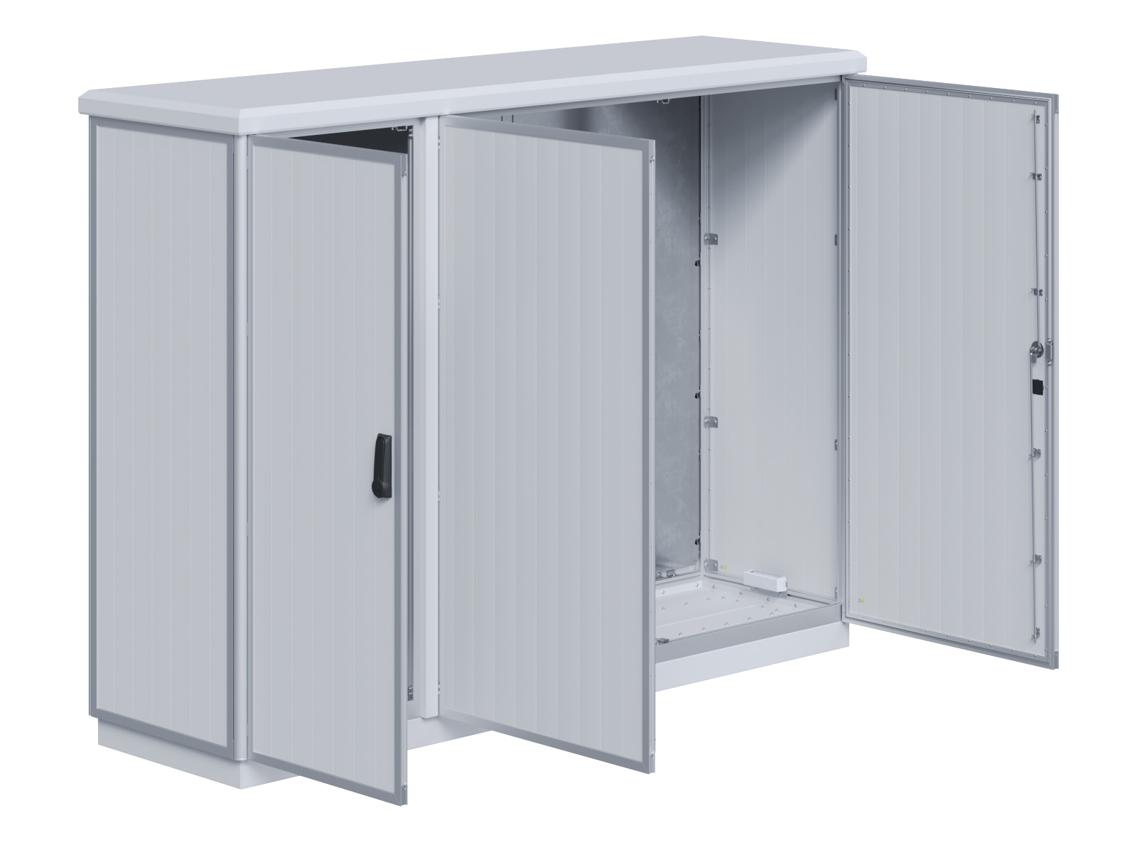 | Outdoor-Schaltschrank aus doppelwandigen Aluminiumprofilen mit EVU-Teil | 11113056 | 2.200 mm | 2.800 mm | 700 mm | Zu den Details |