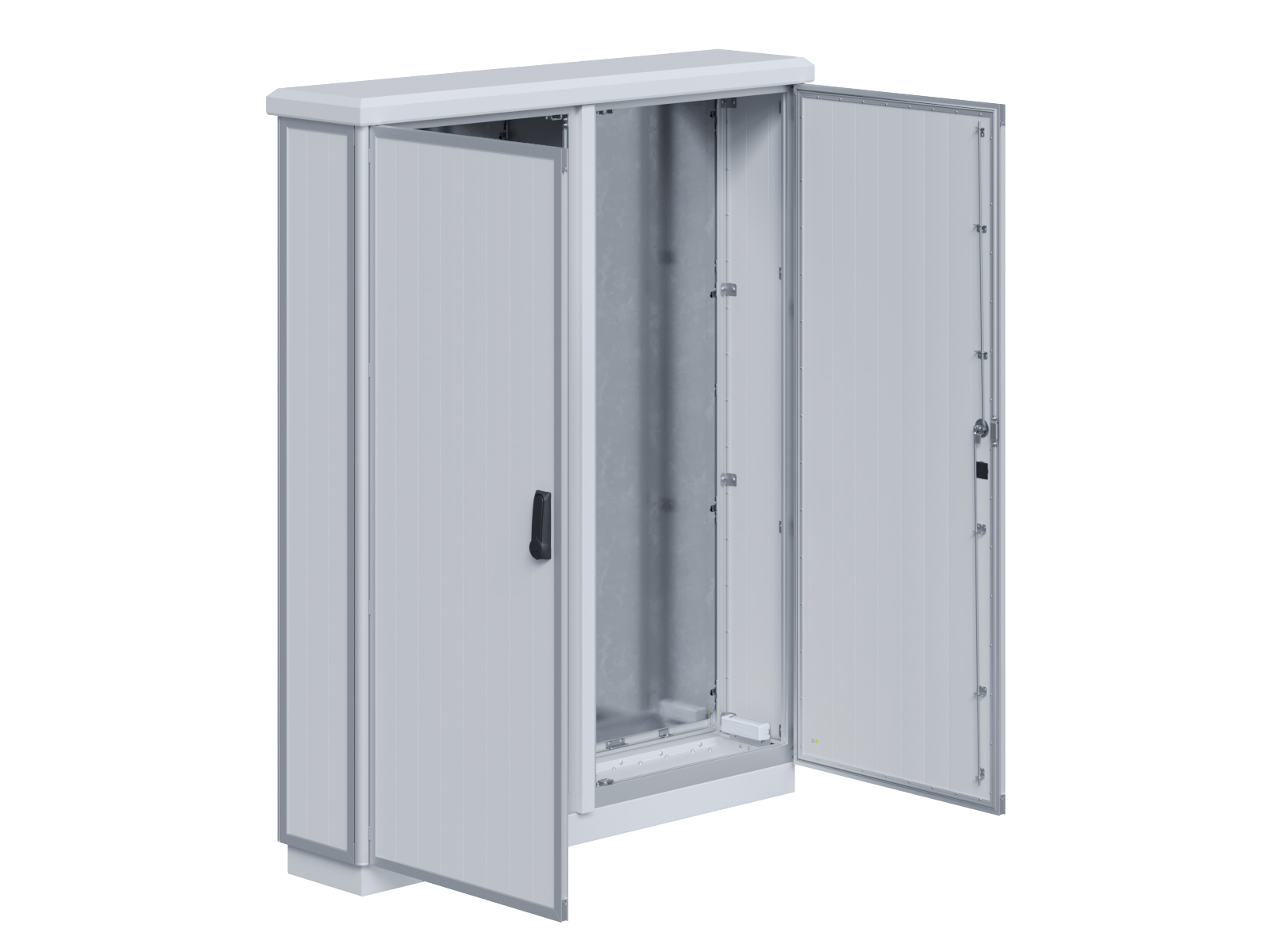 | Outdoor-Schaltschrank aus doppelwandigen Aluminiumprofilen mit EVU-Teil | 11113039 | 1.600 mm | 2.400 mm | 700 mm | Zu den Details |
