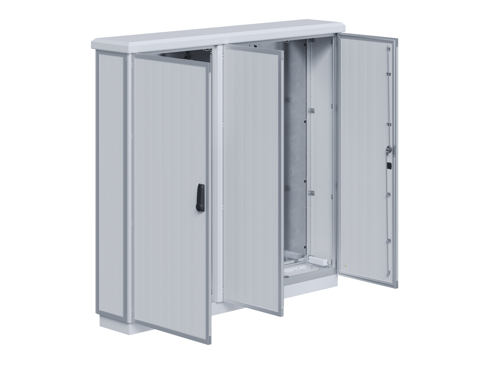 | Outdoor-Schaltschrank aus doppelwandigen Aluminiumprofilen mit EVU-Teil | 11113039 | 1.600 mm | 2.400 mm | 700 mm | Zu den Details |