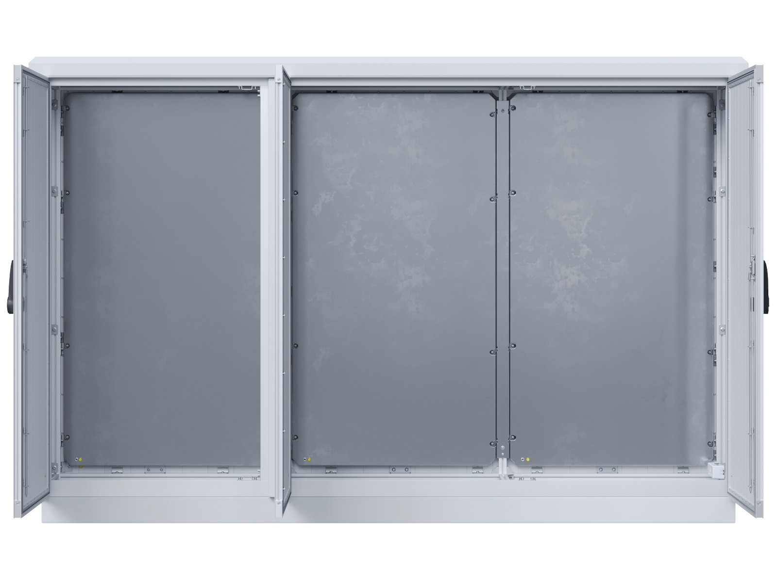 | Outdoor-Schaltschrank aus doppelwandigen Aluminiumprofilen mit EVU-Teil | 11111438 | 2.000 mm | 2.800 mm | 400 mm | Zu den Details |