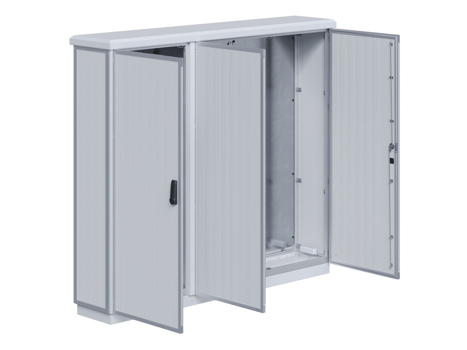 | Outdoor-Schaltschrank aus doppelwandigen Aluminiumprofilen mit EVU-Teil | 11111435 | 1.400 mm | 2.800 mm | 400 mm | Zu den Details |