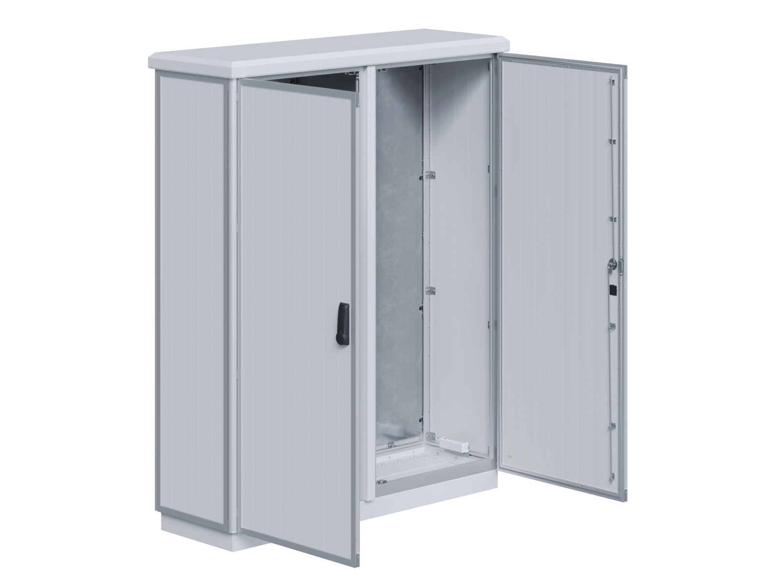 | Outdoor-Schaltschrank aus doppelwandigen Aluminiumprofilen mit EVU-Teil | 11113039 | 1.600 mm | 2.400 mm | 700 mm | Zu den Details |
