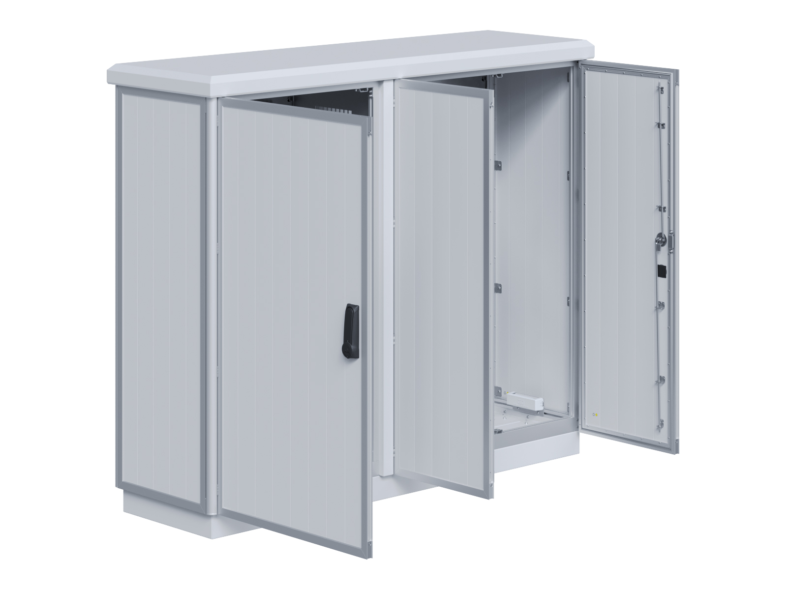 | Outdoor-Schaltschrank aus doppelwandigen Aluminiumprofilen mit EVU-Teil | 11111438 | 2.000 mm | 2.800 mm | 400 mm | Zu den Details |