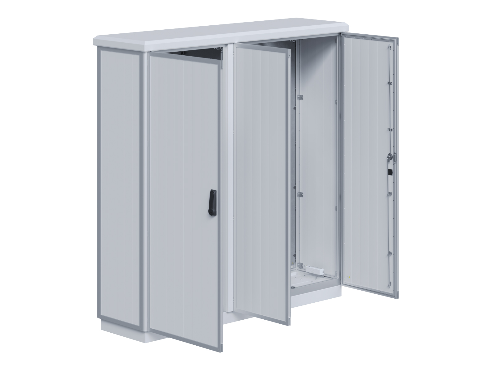 | Outdoor-Schaltschrank aus doppelwandigen Aluminiumprofilen mit EVU-Teil | 11113056 | 2.200 mm | 2.800 mm | 700 mm | Zu den Details |