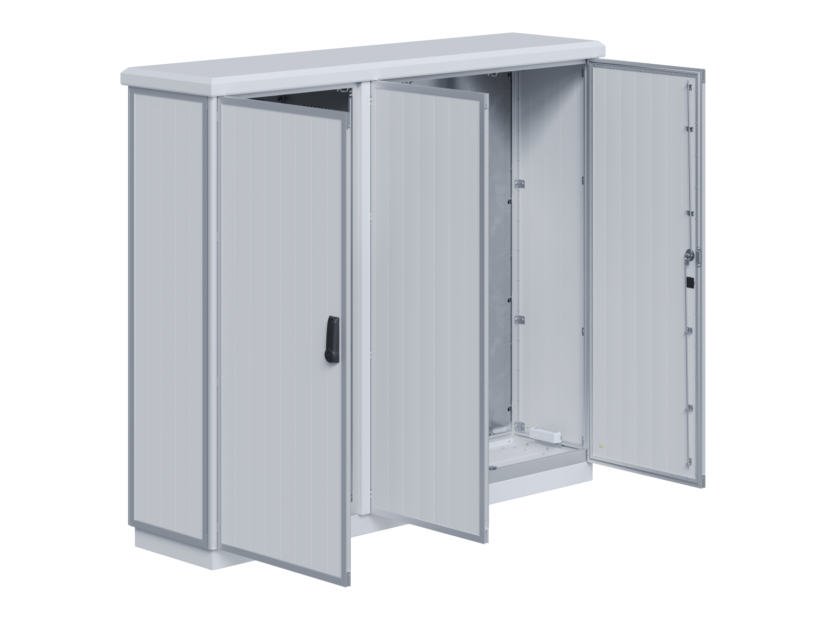 | Outdoor-Schaltschrank aus doppelwandigen Aluminiumprofilen mit EVU-Teil | 11113056 | 2.200 mm | 2.800 mm | 700 mm | Zu den Details |