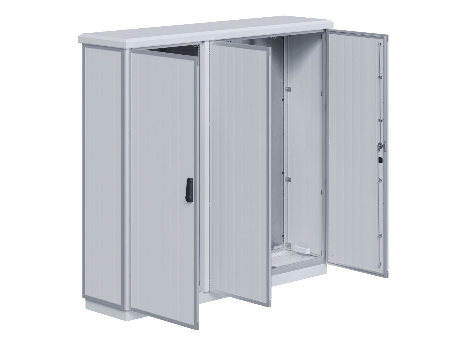 | Outdoor-Schaltschrank aus doppelwandigen Aluminiumprofilen mit EVU-Teil | 11111435 | 1.400 mm | 2.800 mm | 400 mm | Zu den Details |