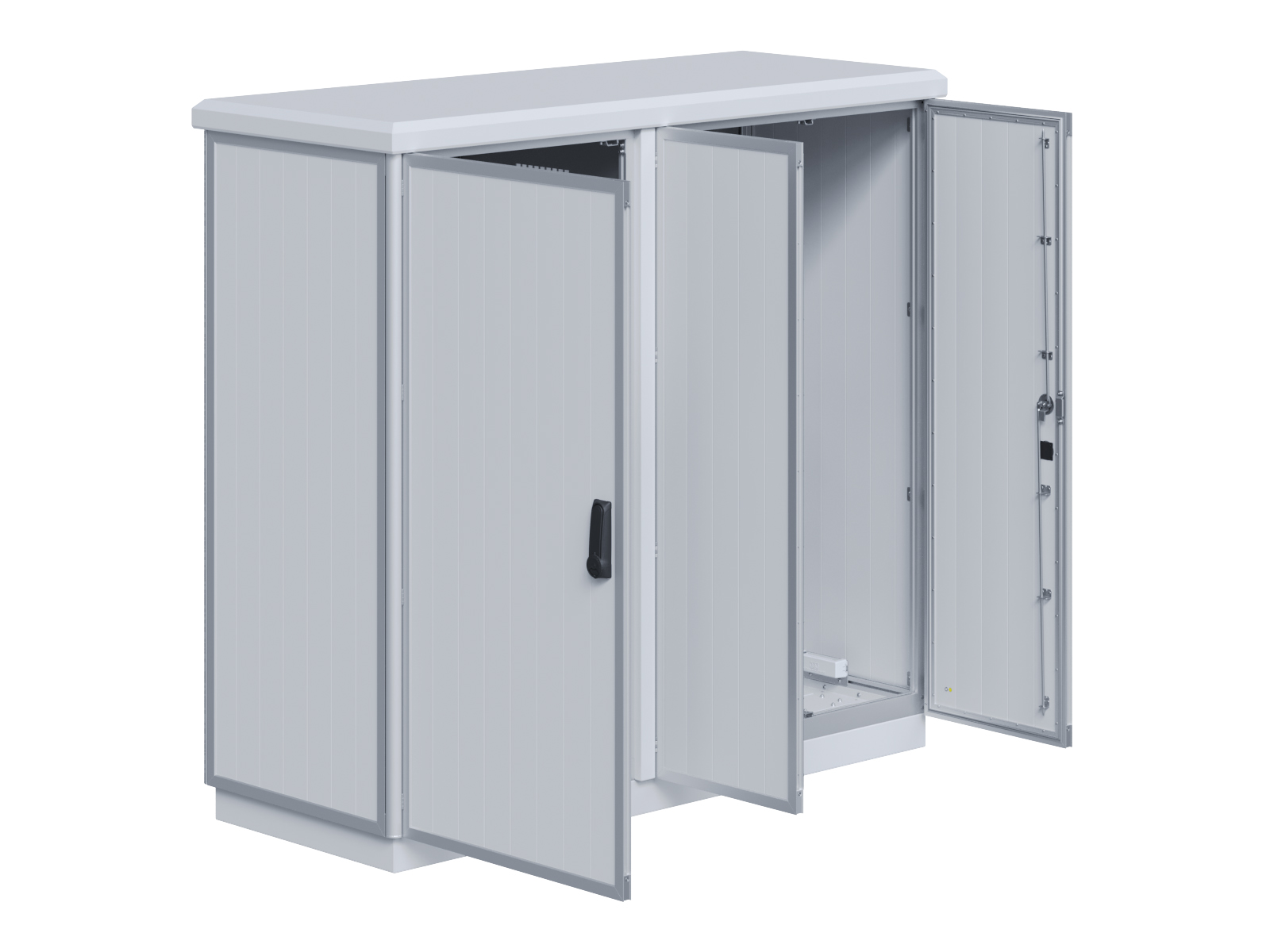 | Outdoor-Schaltschrank aus doppelwandigen Aluminiumprofilen mit EVU-Teil | 11113056 | 2.200 mm | 2.800 mm | 700 mm | Zu den Details |