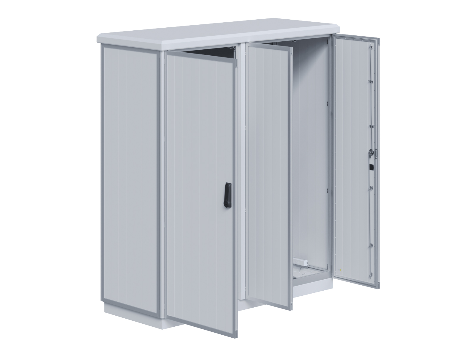 | Outdoor-Schaltschrank aus doppelwandigen Aluminiumprofilen mit EVU-Teil | 11113056 | 2.200 mm | 2.800 mm | 700 mm | Zu den Details |