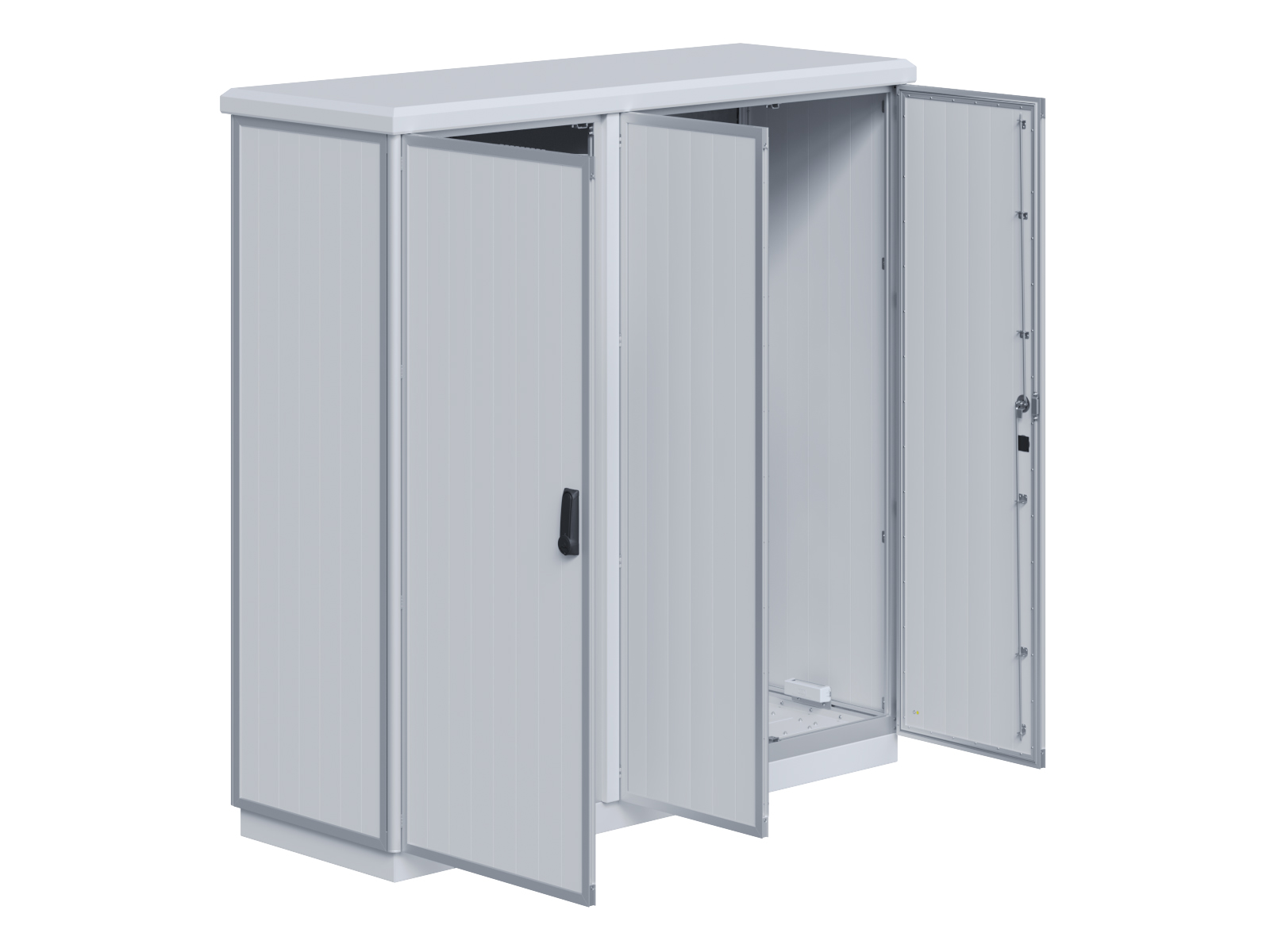 | Outdoor-Schaltschrank aus doppelwandigen Aluminiumprofilen mit EVU-Teil | 11113039 | 1.600 mm | 2.400 mm | 700 mm | Zu den Details |