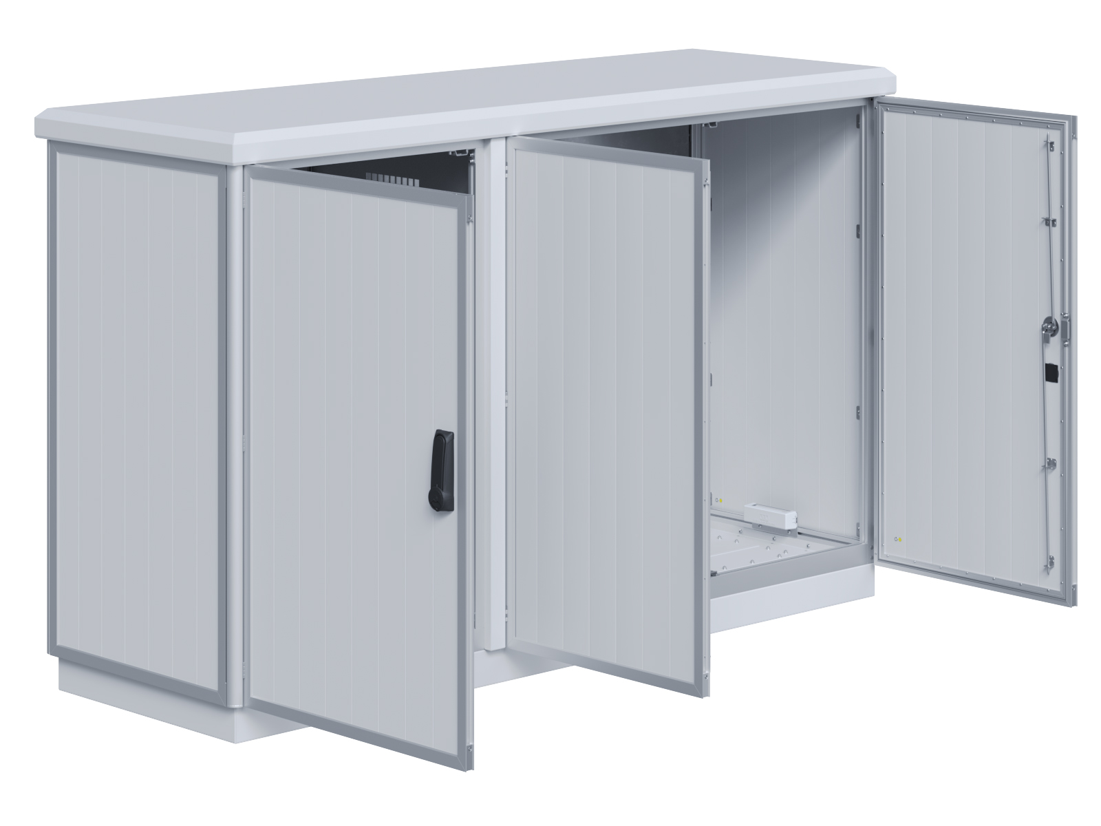 | Outdoor-Schaltschrank aus doppelwandigen Aluminiumprofilen mit EVU-Teil | 11113056 | 2.200 mm | 2.800 mm | 700 mm | Zu den Details |