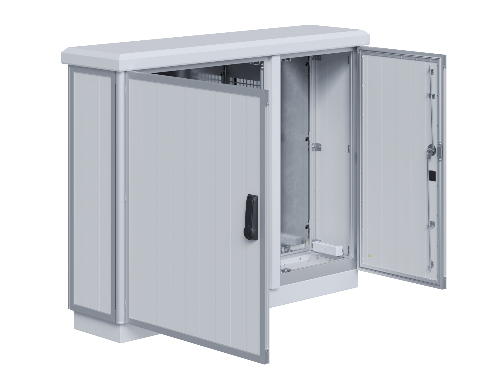 Outdoor-Schaltschrank aus doppelwandigen Aluminiumprofilen mit EVU-Teil