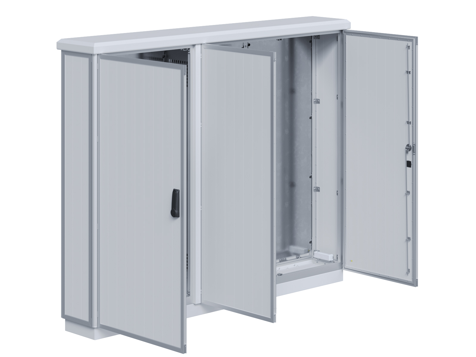 | Outdoor-Schaltschrank aus doppelwandigen Aluminiumprofilen mit EVU-Teil | 11113039 | 1.600 mm | 2.400 mm | 700 mm | Zu den Details |