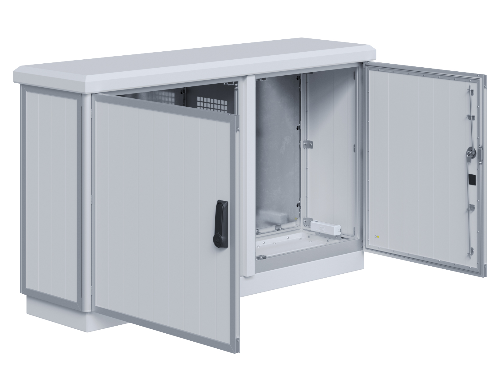 Outdoor-Schaltschrank aus doppelwandigen Aluminiumprofilen mit EVU-Teil