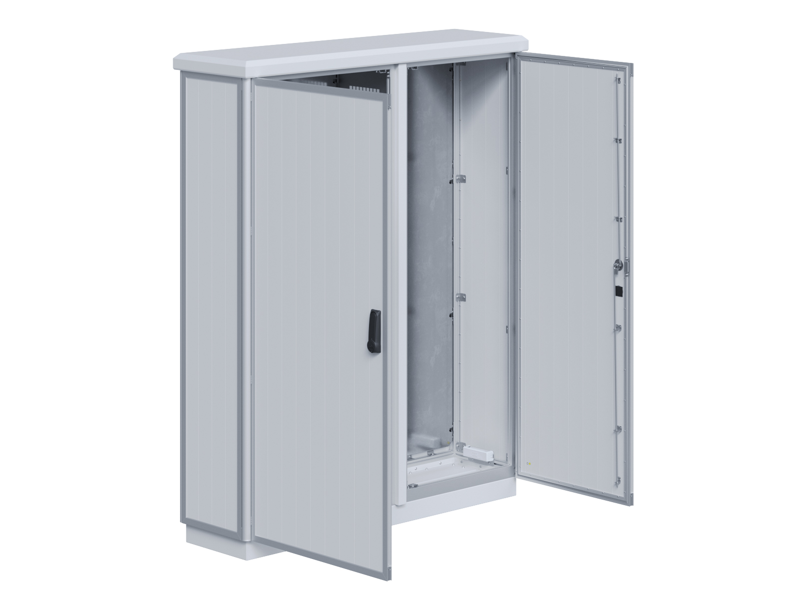 | Outdoor-Schaltschrank aus doppelwandigen Aluminiumprofilen mit EVU-Teil | 11113039 | 1.600 mm | 2.400 mm | 700 mm | Zu den Details |