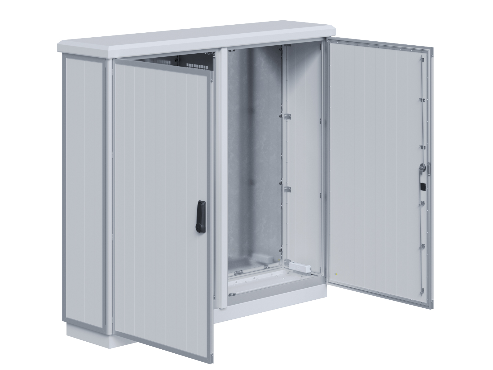 | Outdoor-Schaltschrank aus doppelwandigen Aluminiumprofilen mit EVU-Teil | 11113056 | 2.200 mm | 2.800 mm | 700 mm | Zu den Details |