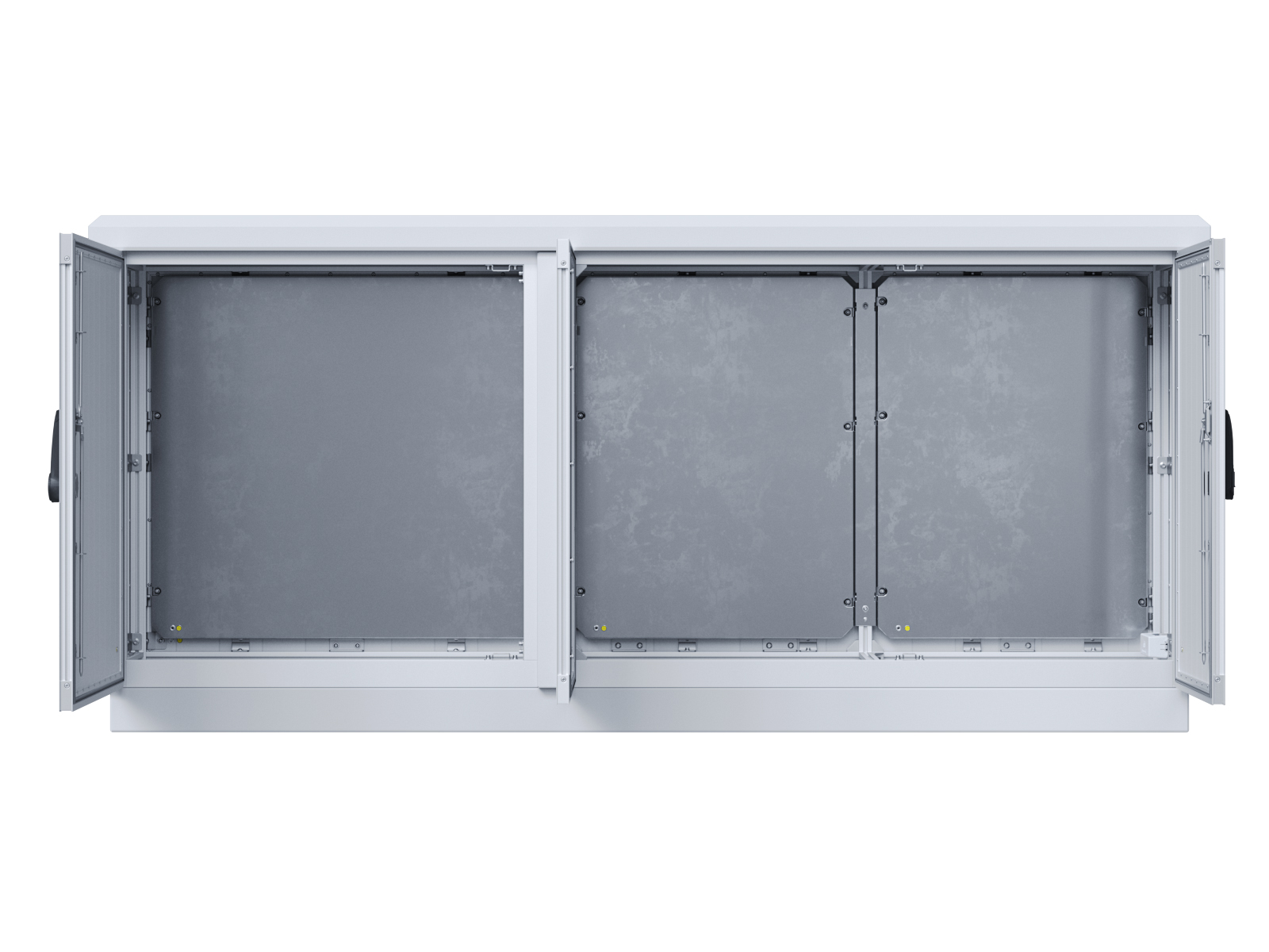 Outdoor-Schaltschrank aus doppelwandigen Aluminiumprofilen mit EVU-Teil