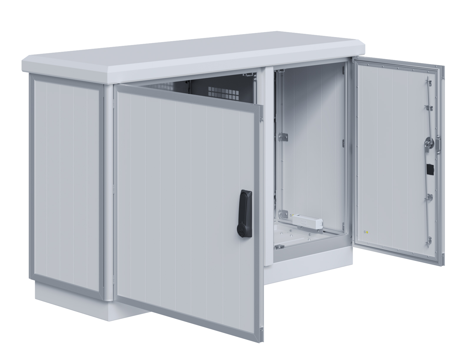 Outdoor-Schaltschrank aus doppelwandigen Aluminiumprofilen mit EVU-Teil