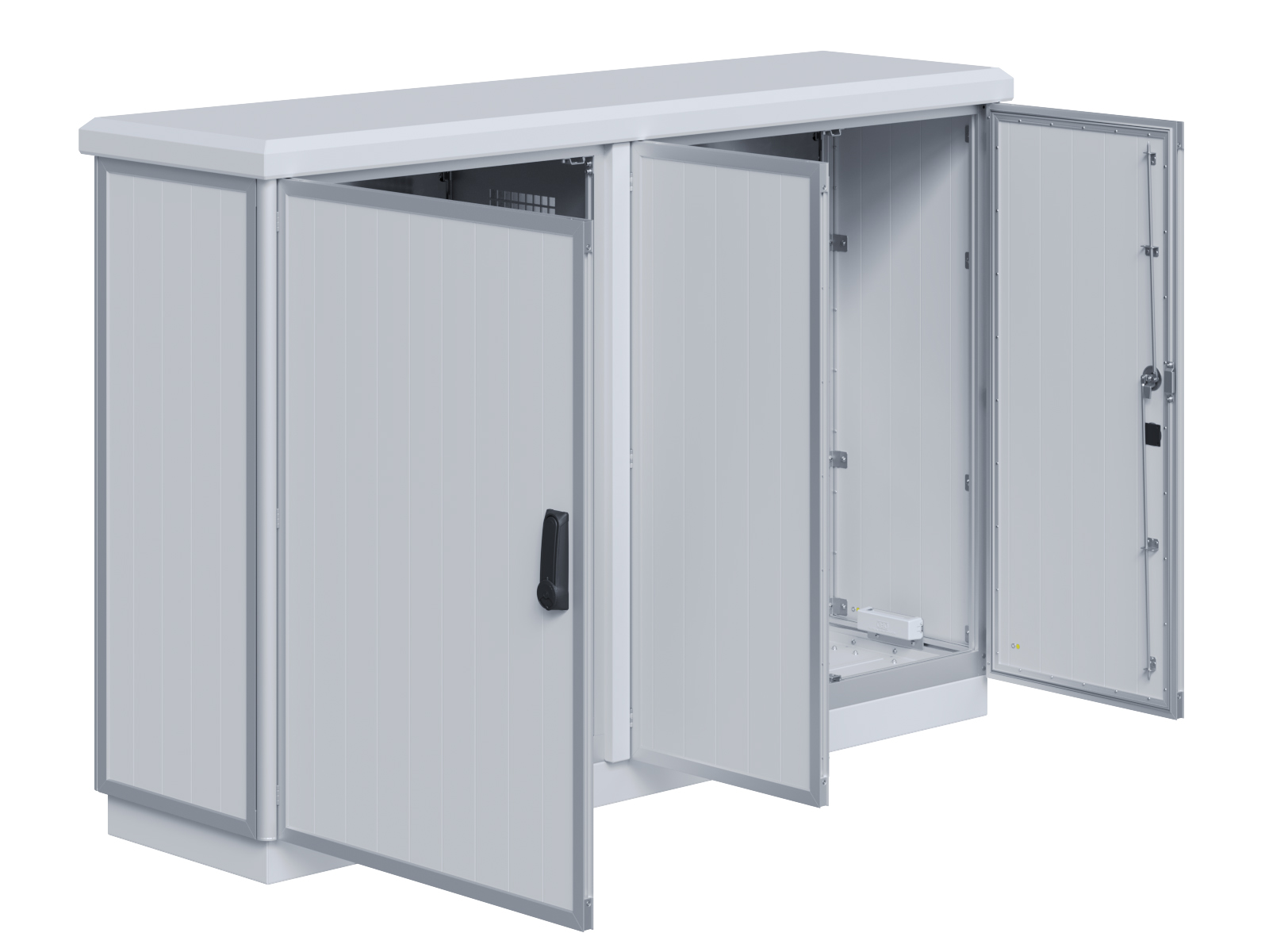 Outdoor-Schaltschrank aus doppelwandigen Aluminiumprofilen mit EVU-Teil