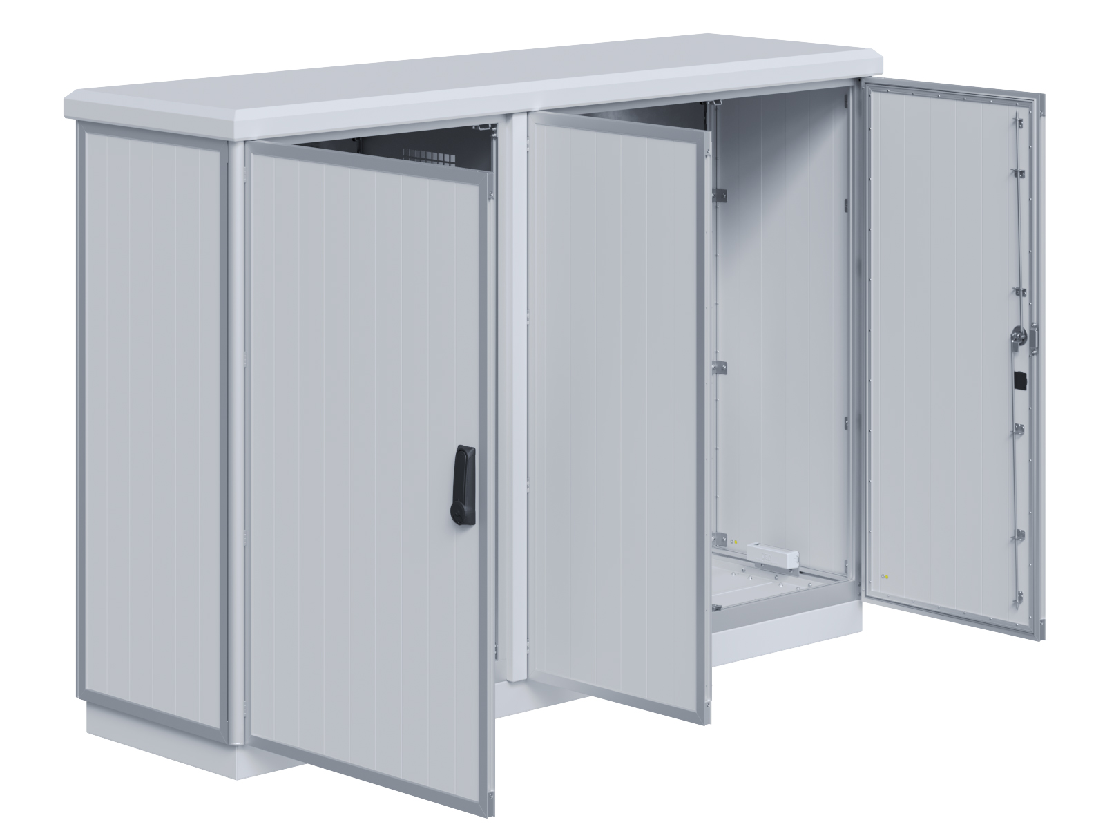| Outdoor-Schaltschrank aus doppelwandigen Aluminiumprofilen mit EVU-Teil | 11111438 | 2.000 mm | 2.800 mm | 400 mm | Zu den Details |