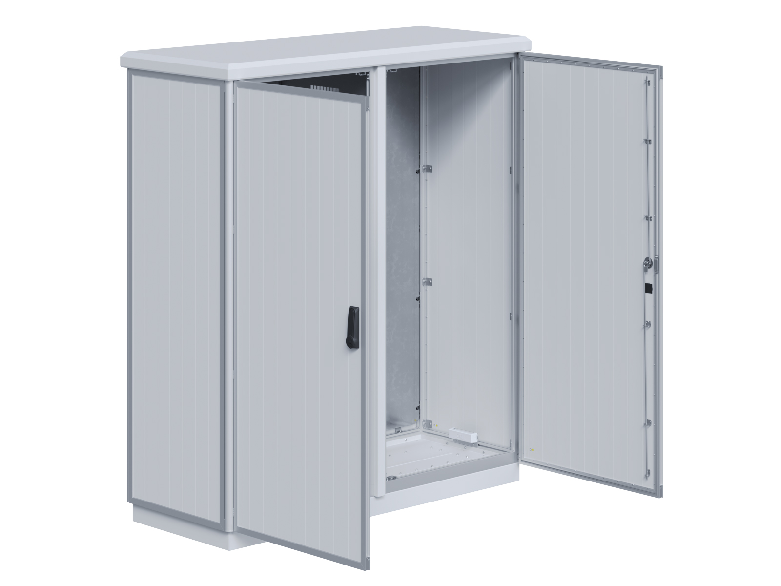 | Outdoor-Schaltschrank aus doppelwandigen Aluminiumprofilen mit EVU-Teil | 11113056 | 2.200 mm | 2.800 mm | 700 mm | Zu den Details |