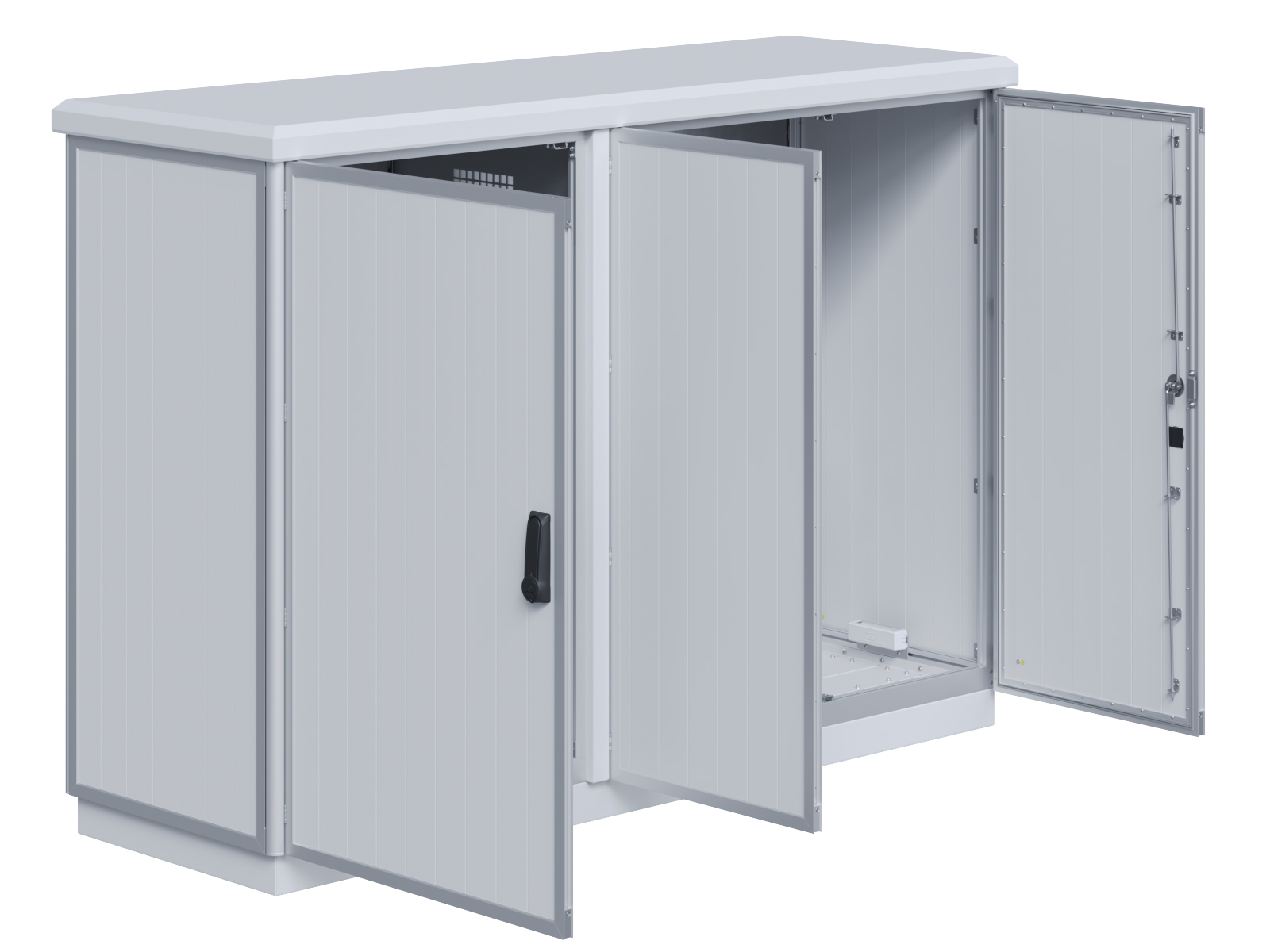 | Outdoor-Schaltschrank aus doppelwandigen Aluminiumprofilen mit EVU-Teil | 11111438 | 2.000 mm | 2.800 mm | 400 mm | Zu den Details |