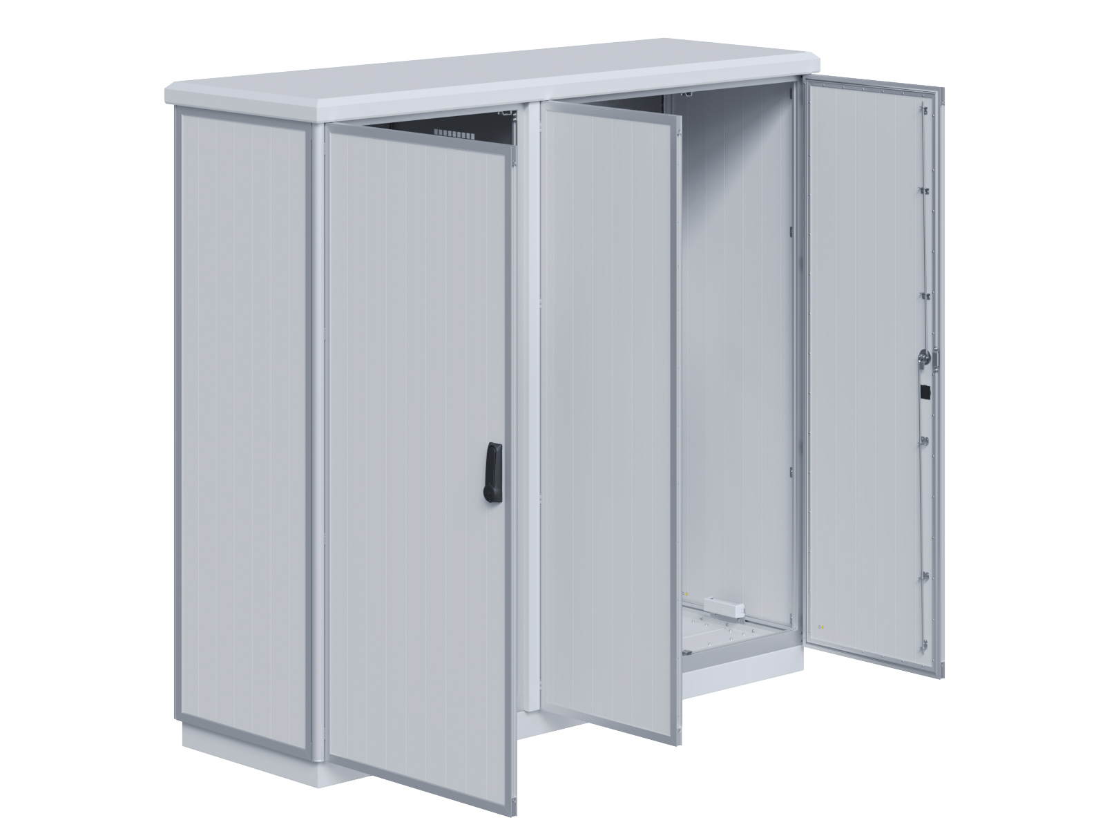 | Outdoor-Schaltschrank aus doppelwandigen Aluminiumprofilen mit EVU-Teil | 11113056 | 2.200 mm | 2.800 mm | 700 mm | Zu den Details |