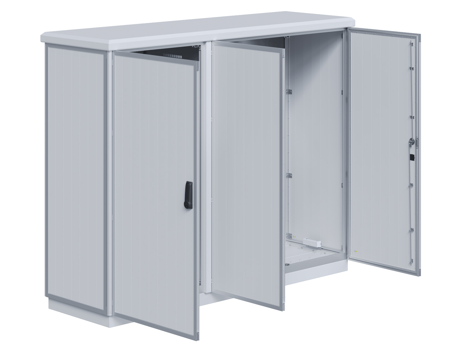 | Outdoor-Schaltschrank aus doppelwandigen Aluminiumprofilen mit EVU-Teil | 11111435 | 1.400 mm | 2.800 mm | 400 mm | Zu den Details |