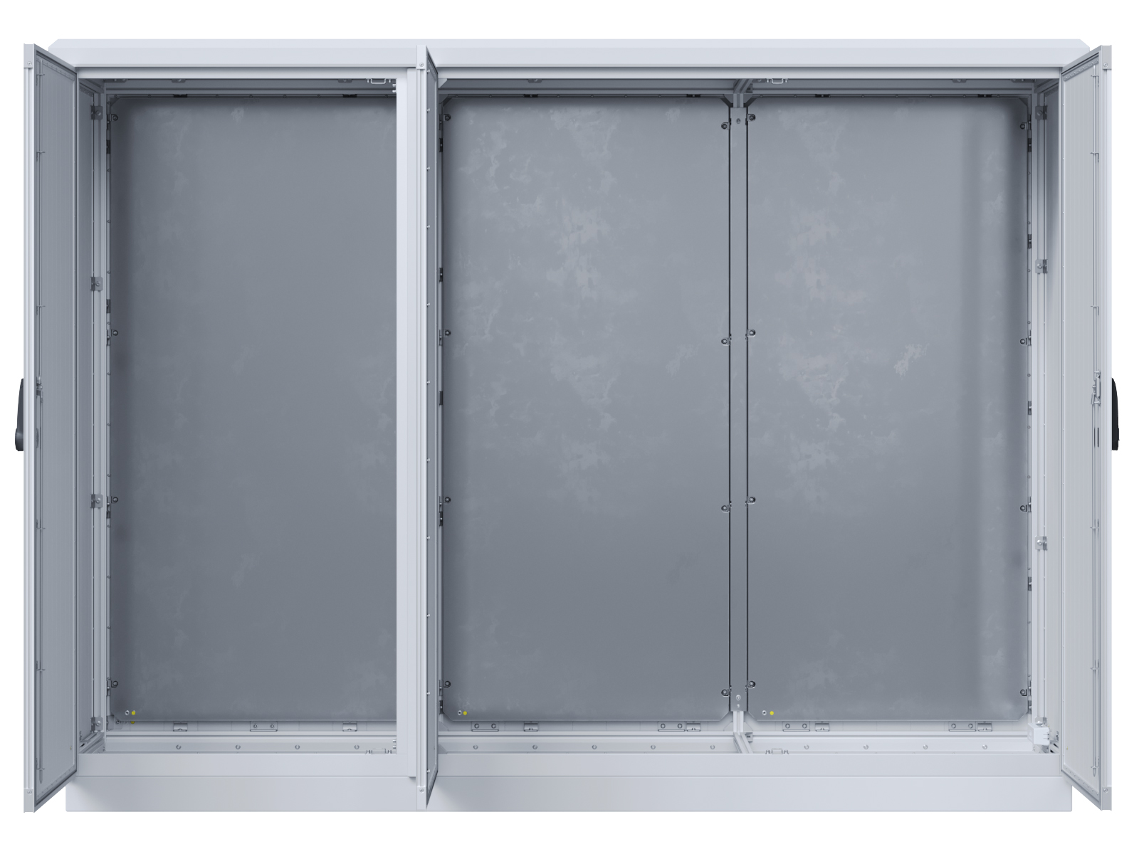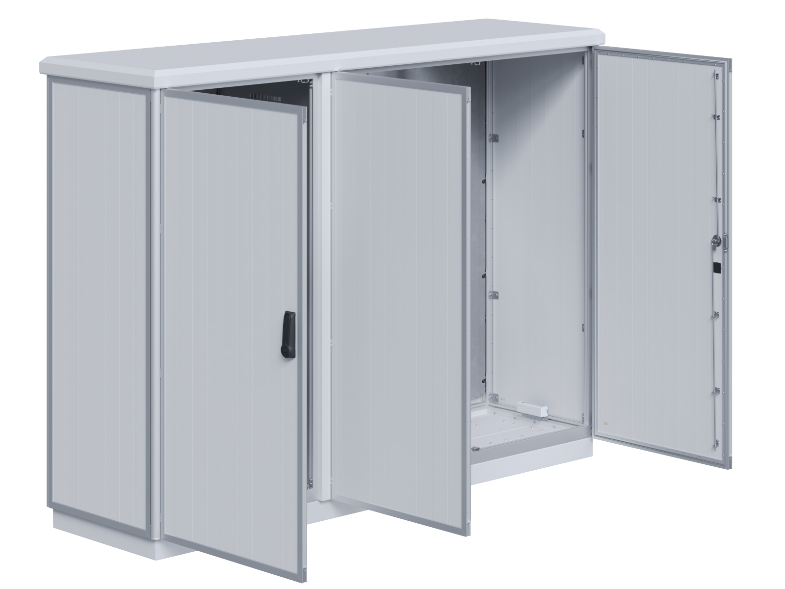 | Outdoor-Schaltschrank aus doppelwandigen Aluminiumprofilen mit EVU-Teil | 11111438 | 2.000 mm | 2.800 mm | 400 mm | Zu den Details |