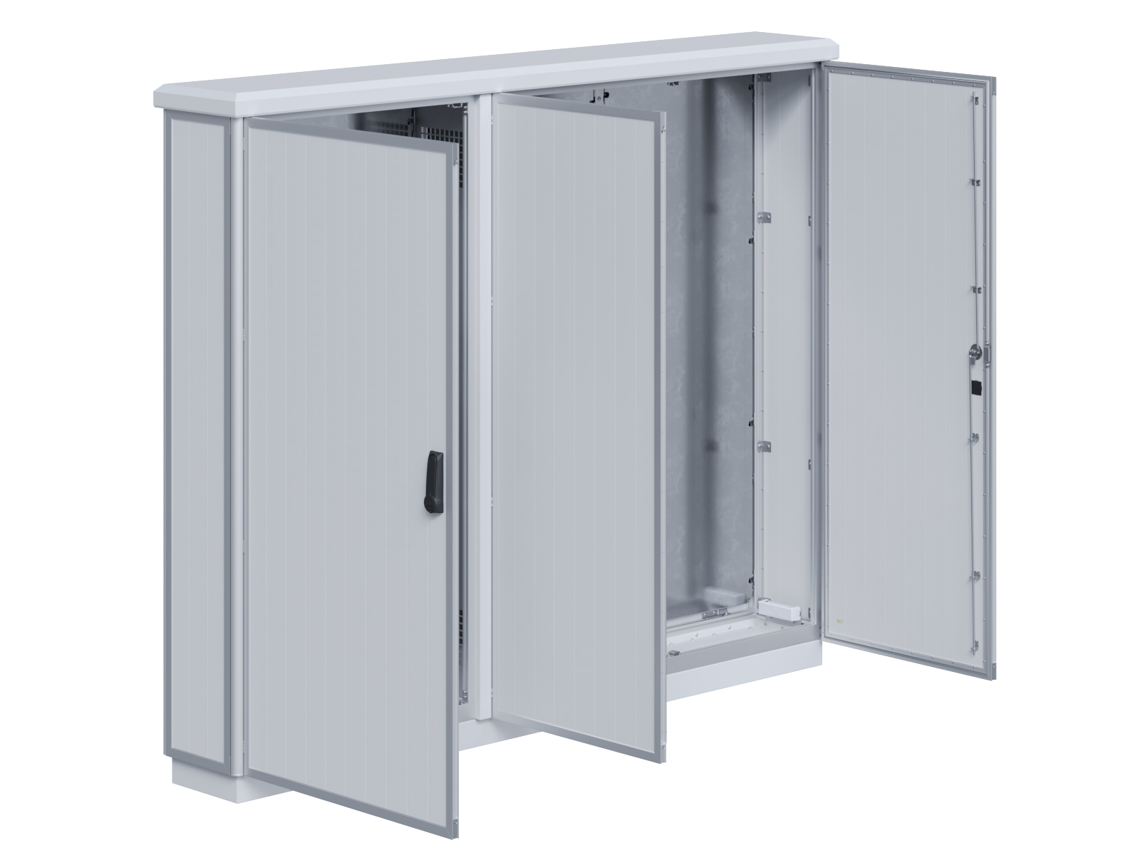 | Outdoor-Schaltschrank aus doppelwandigen Aluminiumprofilen mit EVU-Teil | 11111439 | 2.200 mm | 2.800 mm | 400 mm | Zu den Details |