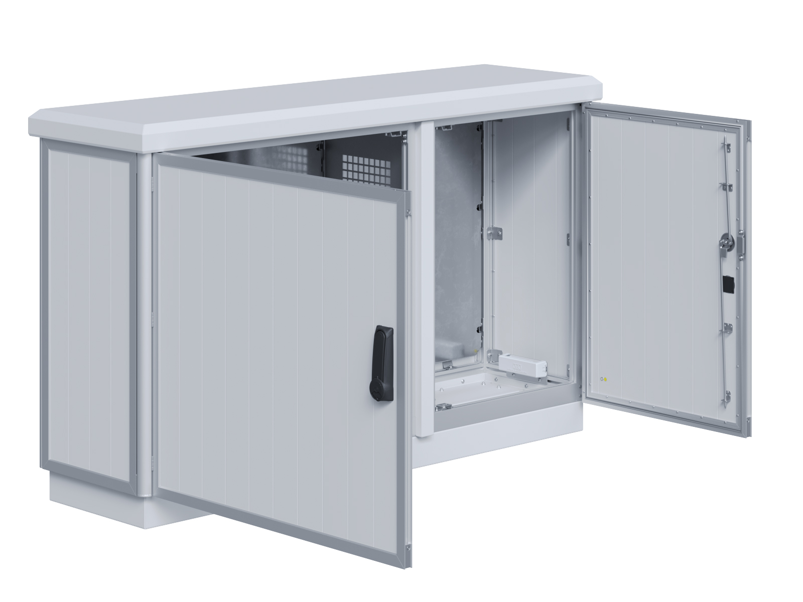 Outdoor-Schaltschrank aus doppelwandigen Aluminiumprofilen mit EVU-Teil