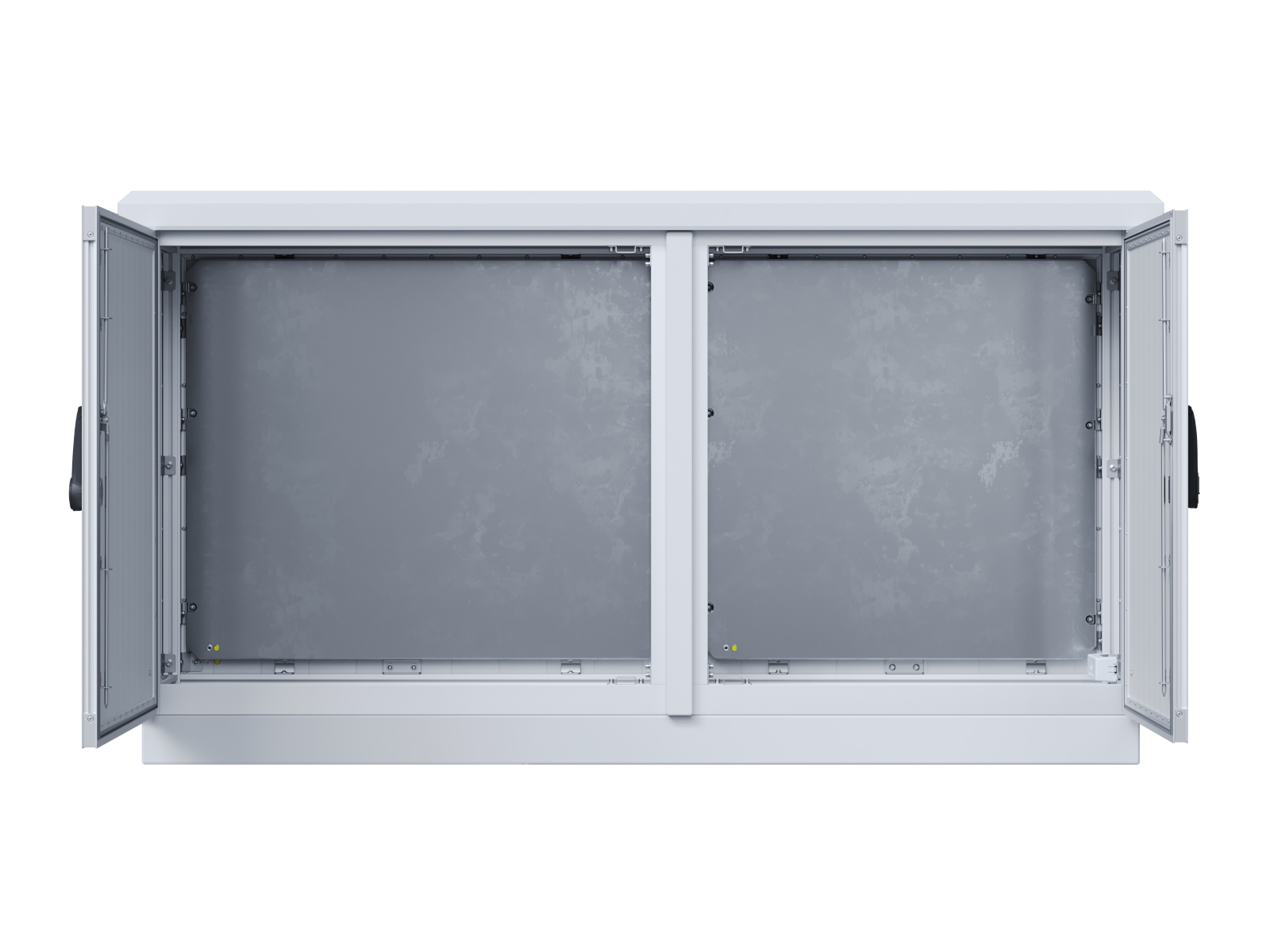 | Outdoor-Schaltschrank aus doppelwandigen Aluminiumprofilen mit EVU-Teil | 11111438 | 2.000 mm | 2.800 mm | 400 mm | Zu den Details |