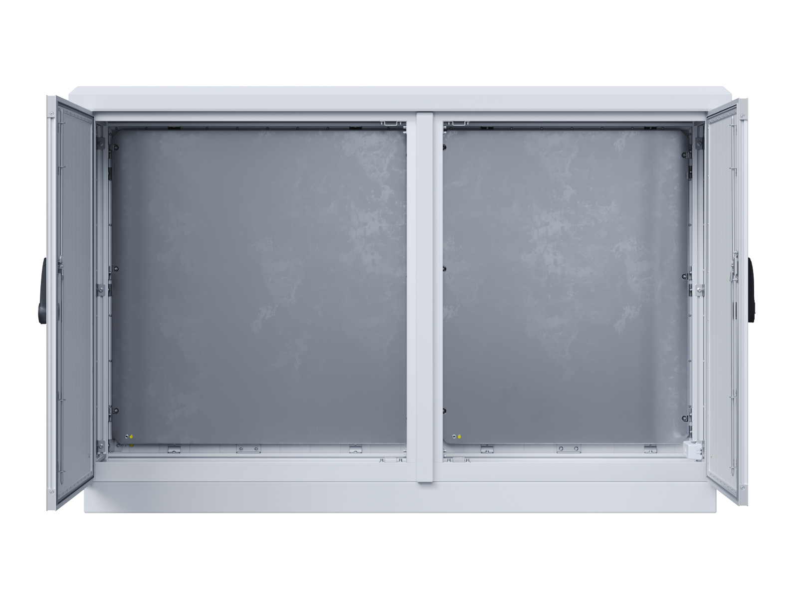 | Outdoor-Schaltschrank aus doppelwandigen Aluminiumprofilen mit EVU-Teil | 11111438 | 2.000 mm | 2.800 mm | 400 mm | Zu den Details |