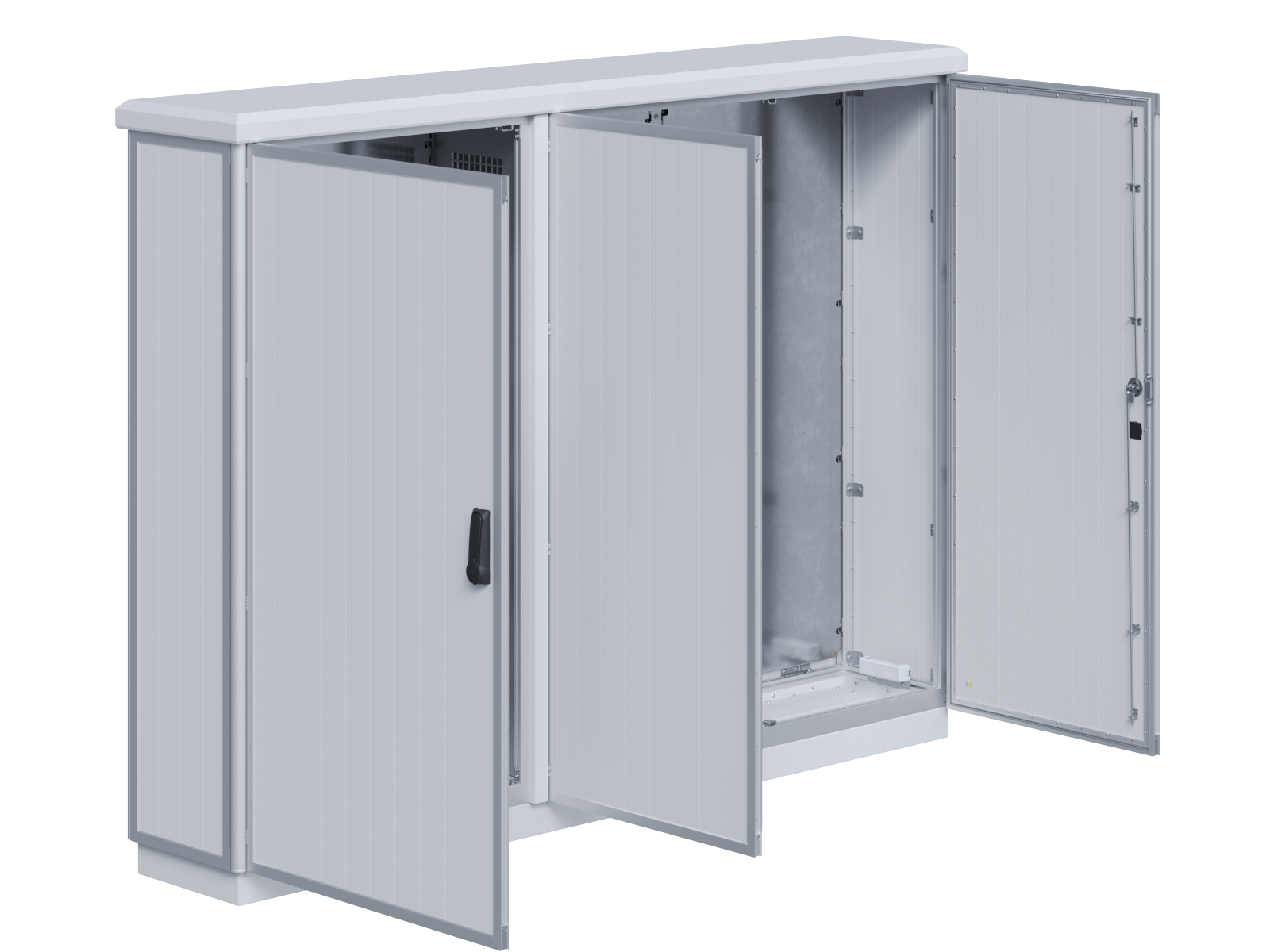 | Outdoor-Schaltschrank aus doppelwandigen Aluminiumprofilen mit EVU-Teil | 11113056 | 2.200 mm | 2.800 mm | 700 mm | Zu den Details |