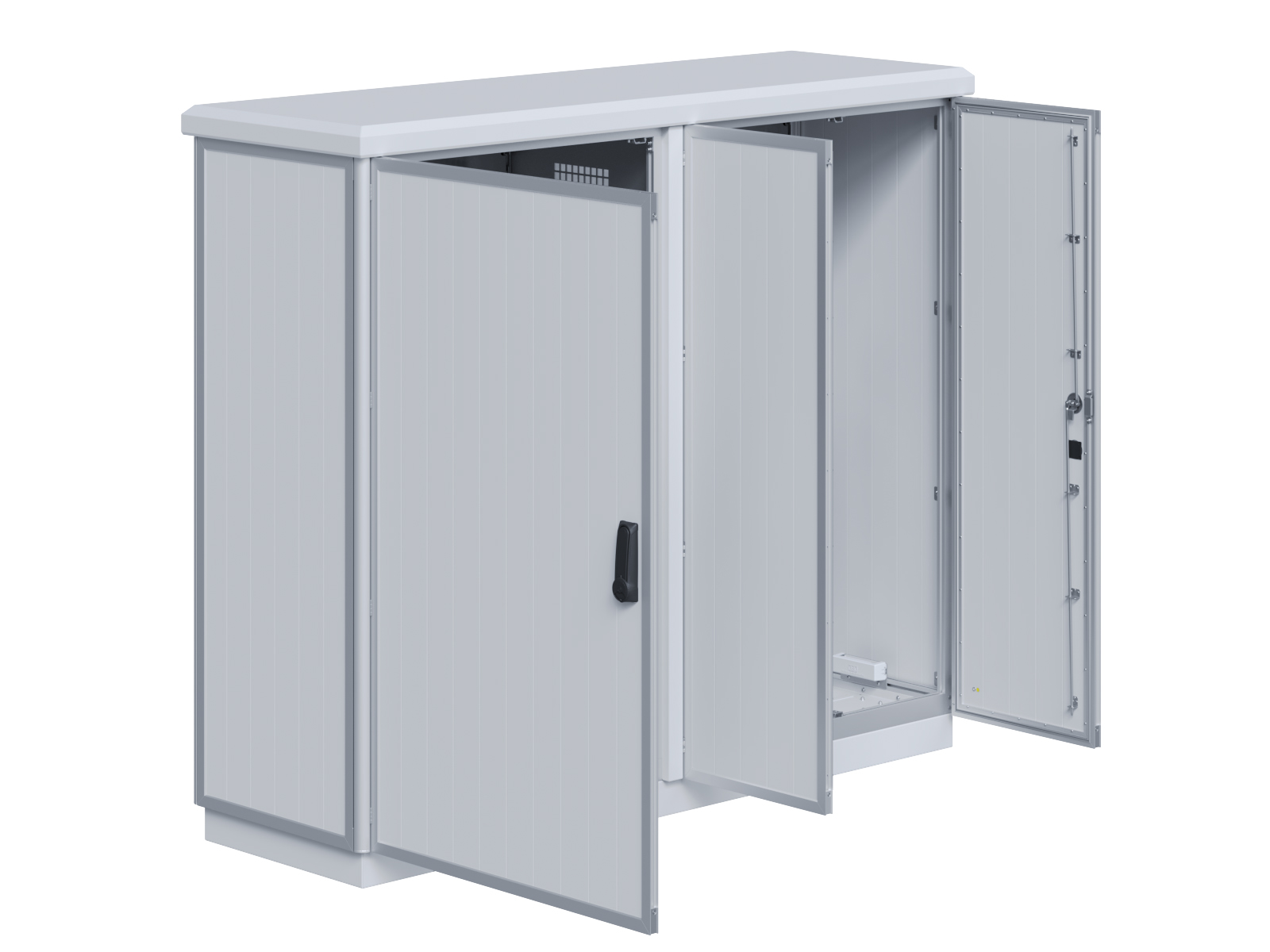 | Outdoor-Schaltschrank aus doppelwandigen Aluminiumprofilen mit EVU-Teil | 11111438 | 2.000 mm | 2.800 mm | 400 mm | Zu den Details |