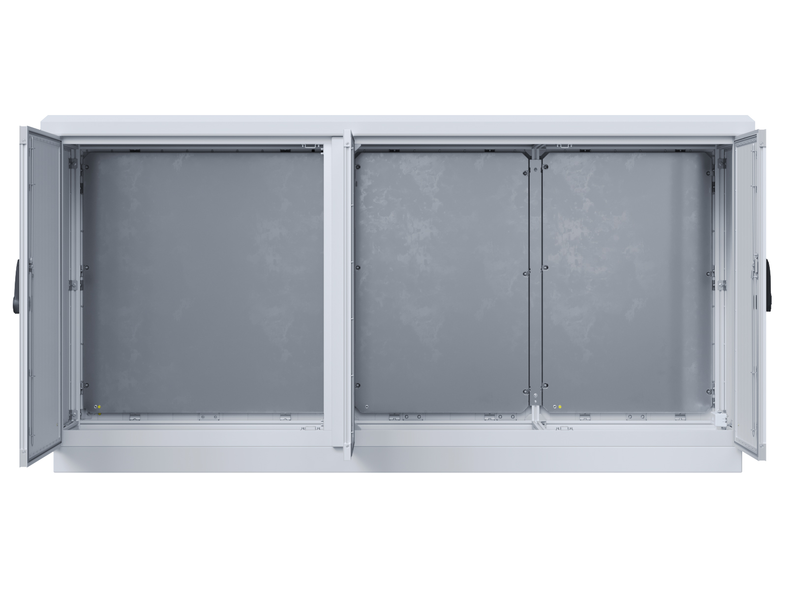 | Outdoor-Schaltschrank aus doppelwandigen Aluminiumprofilen mit EVU-Teil | 11111438 | 2.000 mm | 2.800 mm | 400 mm | Zu den Details |