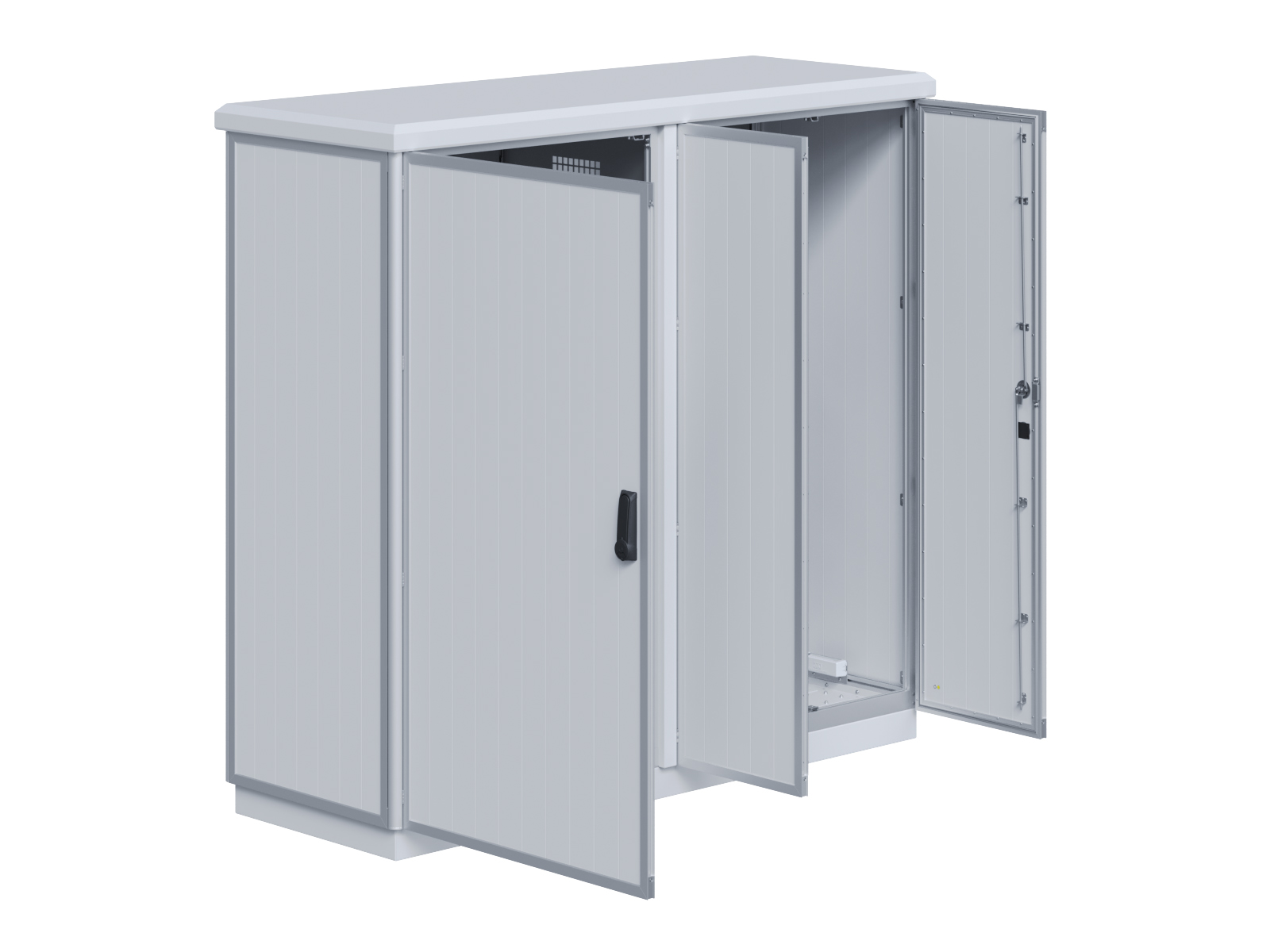 | Outdoor-Schaltschrank aus doppelwandigen Aluminiumprofilen mit EVU-Teil | 11113056 | 2.200 mm | 2.800 mm | 700 mm | Zu den Details |