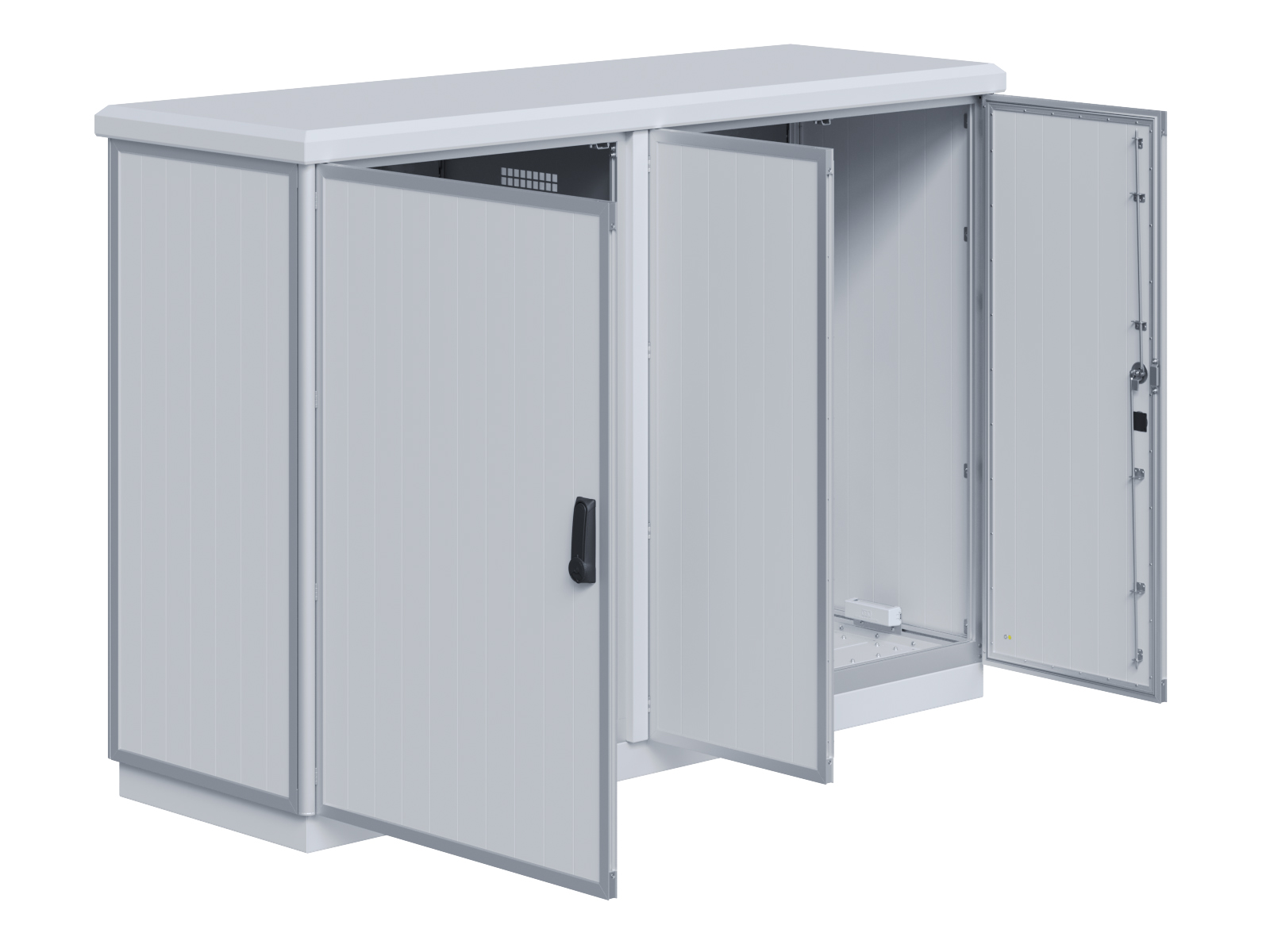 | Outdoor-Schaltschrank aus doppelwandigen Aluminiumprofilen mit EVU-Teil | 11111435 | 1.400 mm | 2.800 mm | 400 mm | Zu den Details |