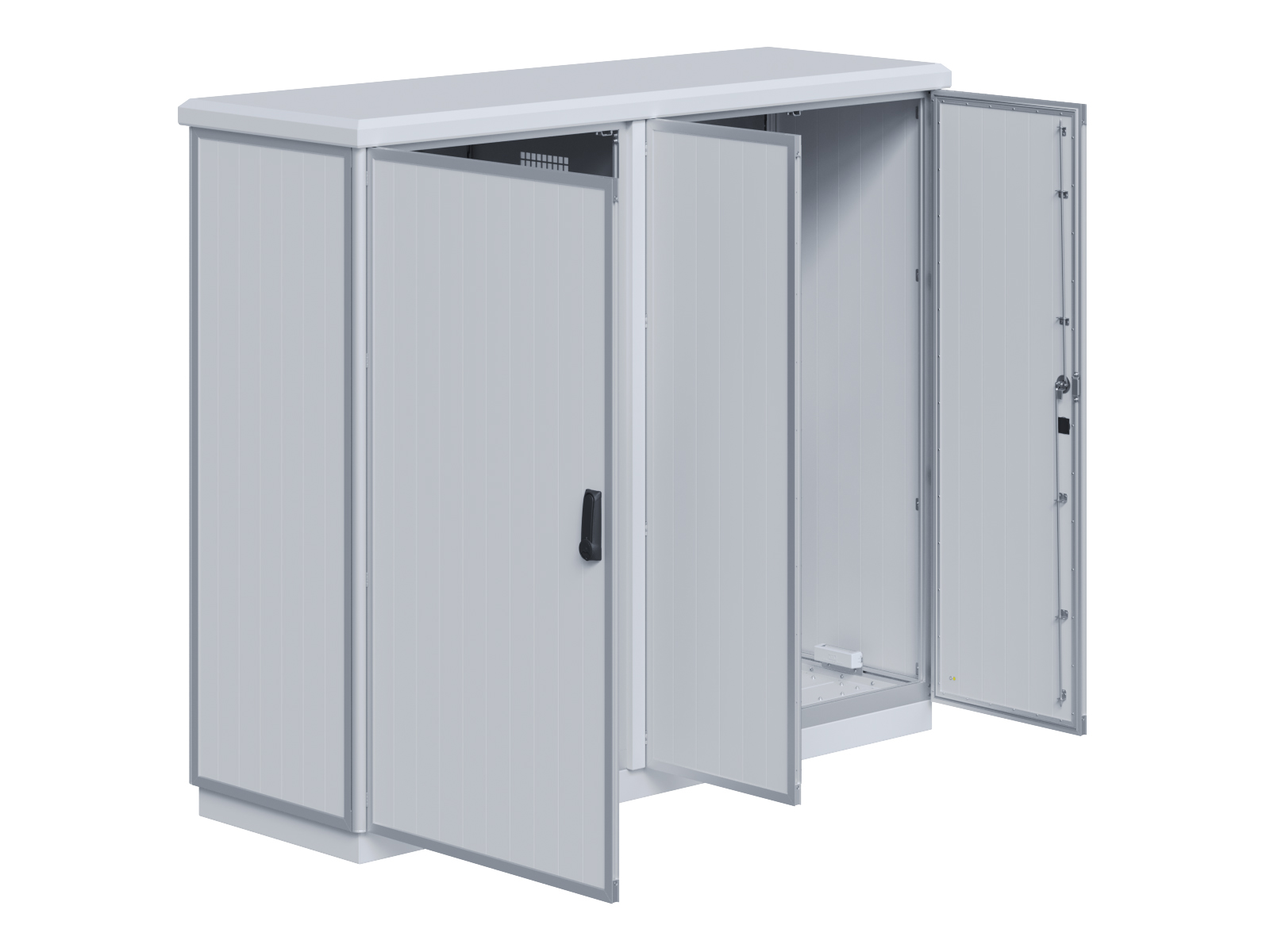 | Outdoor-Schaltschrank aus doppelwandigen Aluminiumprofilen mit EVU-Teil | 11111438 | 2.000 mm | 2.800 mm | 400 mm | Zu den Details |
