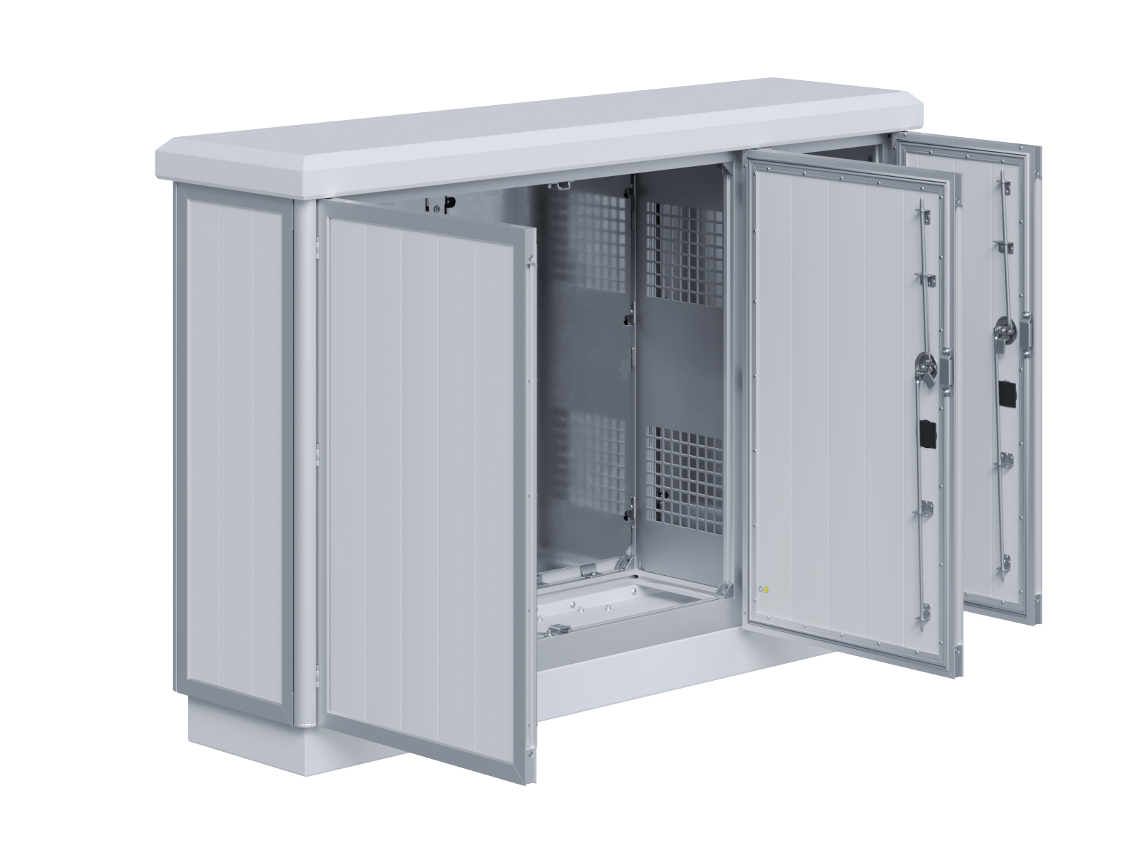 Outdoor-Schaltschrank aus doppelwandigen Aluminiumprofilen mit EVU-Teil