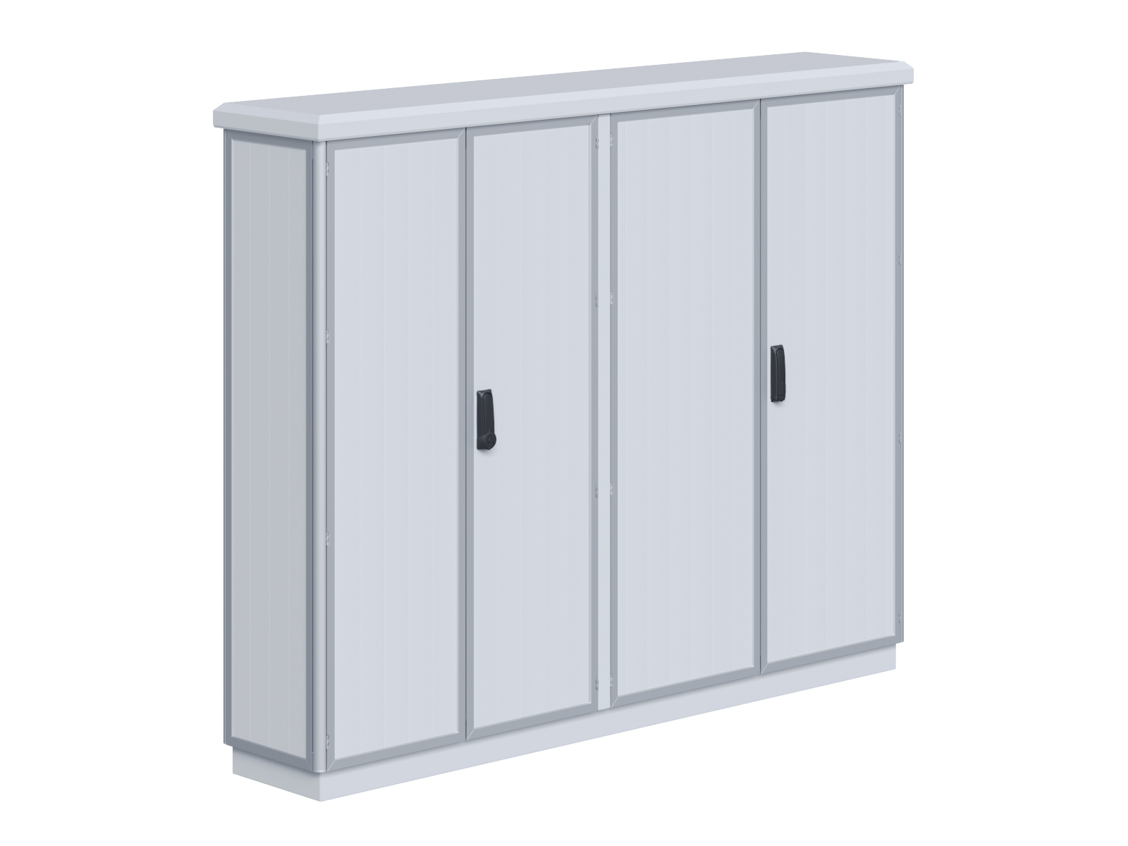 | Outdoor-Schaltschrank aus doppelwandigen Aluminiumprofilen mit EVU-Teil | 11111435 | 1.400 mm | 2.800 mm | 400 mm | Zu den Details |