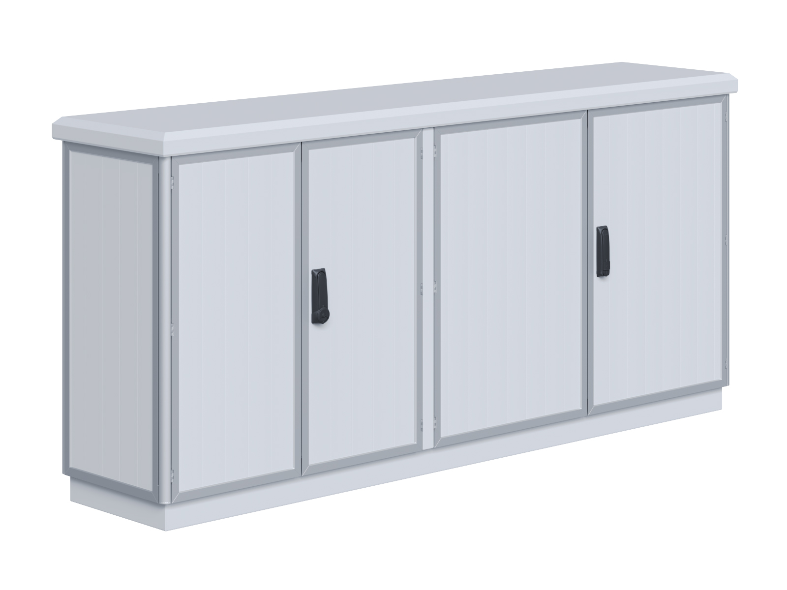 | Outdoor-Schaltschrank aus doppelwandigen Aluminiumprofilen mit EVU-Teil | 11111435 | 1.400 mm | 2.800 mm | 400 mm | Zu den Details |