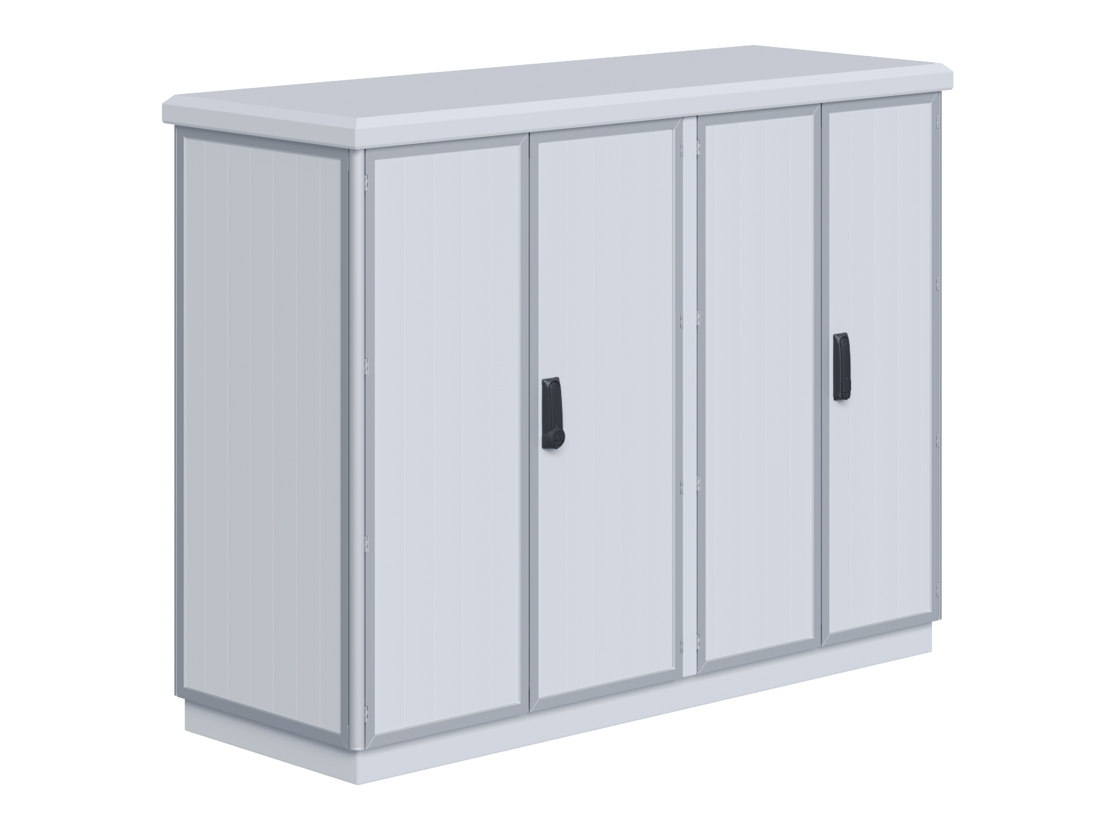 | Outdoor-Schaltschrank aus doppelwandigen Aluminiumprofilen mit EVU-Teil | 11111438 | 2.000 mm | 2.800 mm | 400 mm | Zu den Details |