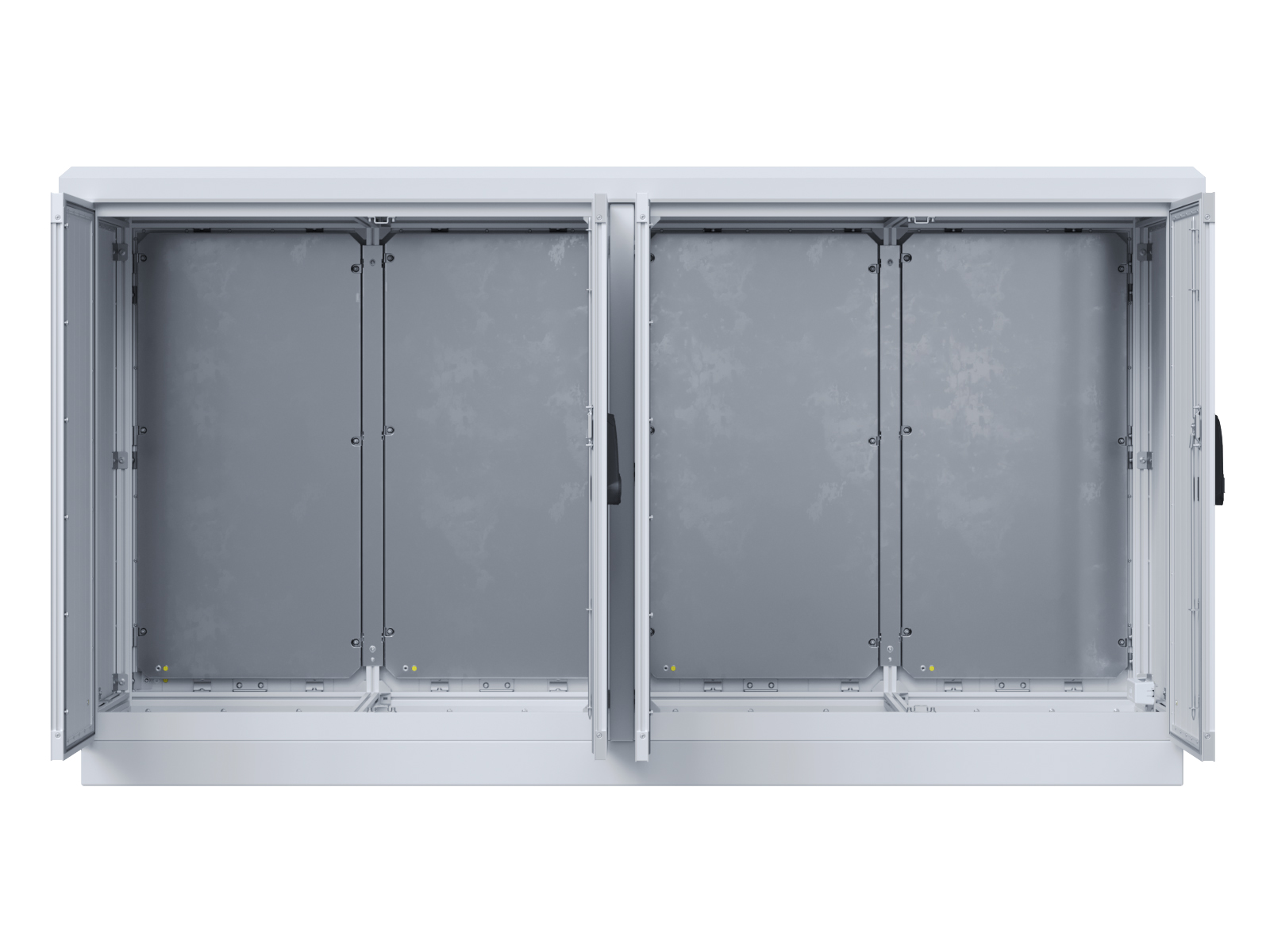 | Outdoor-Schaltschrank aus doppelwandigen Aluminiumprofilen mit EVU-Teil | 11111438 | 2.000 mm | 2.800 mm | 400 mm | Zu den Details |