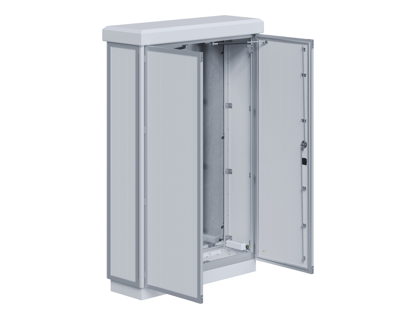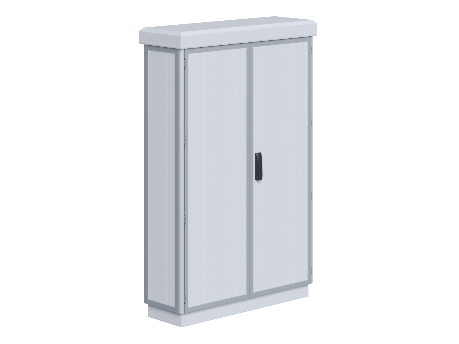 Outdoor-Schaltschrank aus doppelwandigen Aluminiumprofilen mit Schloß-Anschlagtür