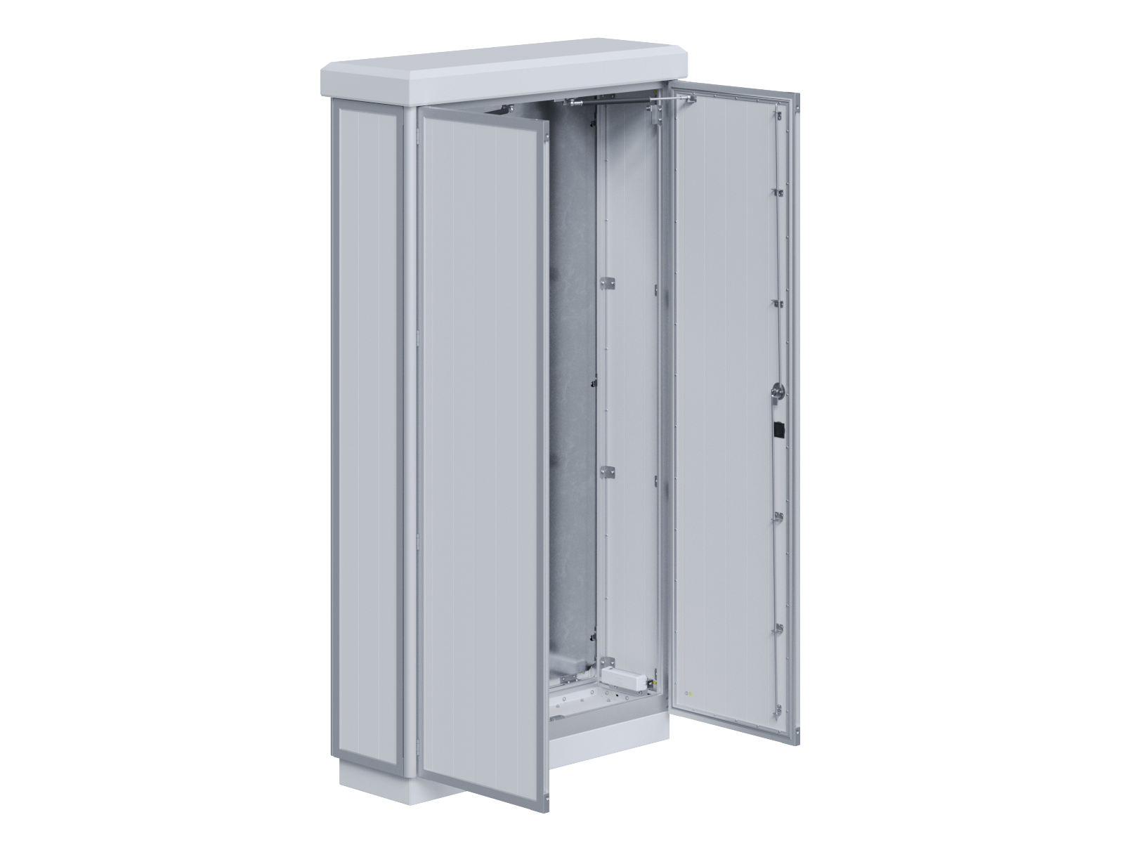 Outdoor-Schaltschrank aus doppelwandigen Aluminiumprofilen mit Schloß-Anschlagtür