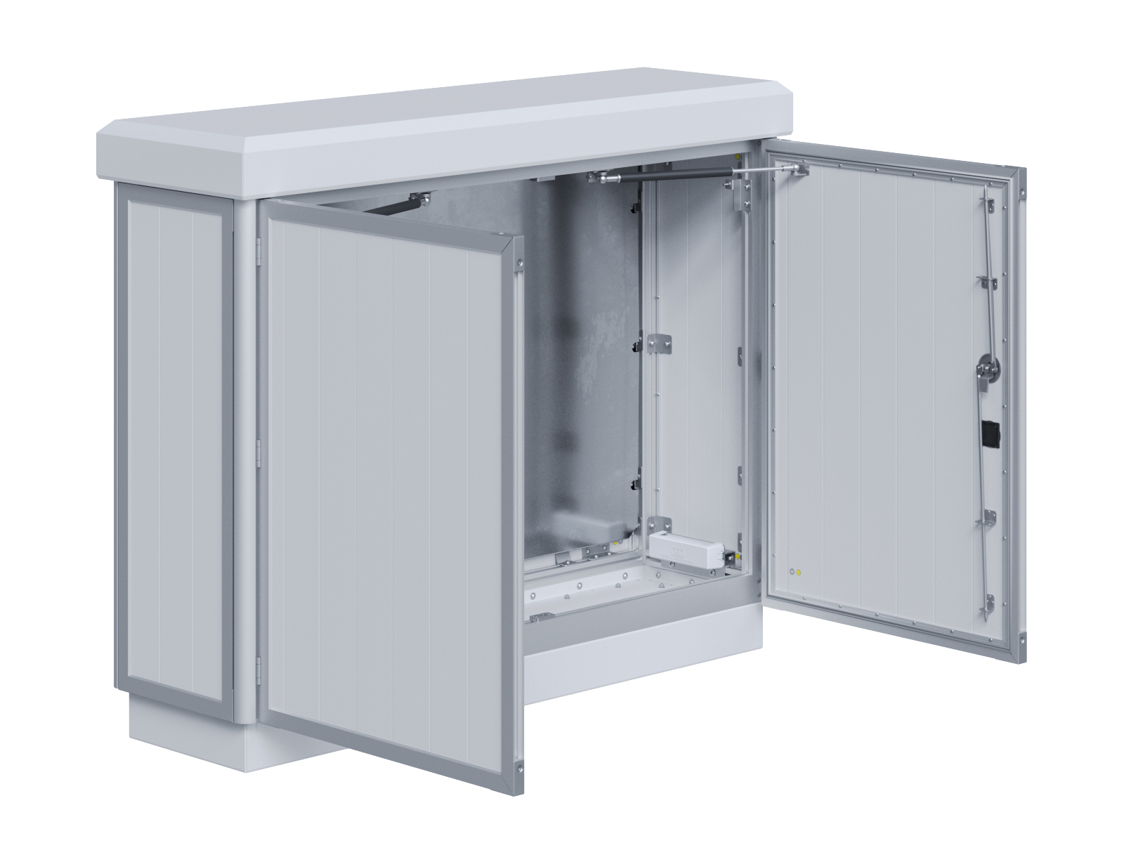 Outdoor-Schaltschrank aus doppelwandigen Aluminiumprofilen mit Schloß-Anschlagtür