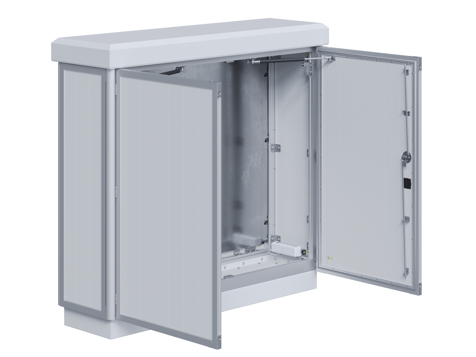Outdoor-Schaltschrank aus doppelwandigen Aluminiumprofilen mit Schloß-Anschlagtür