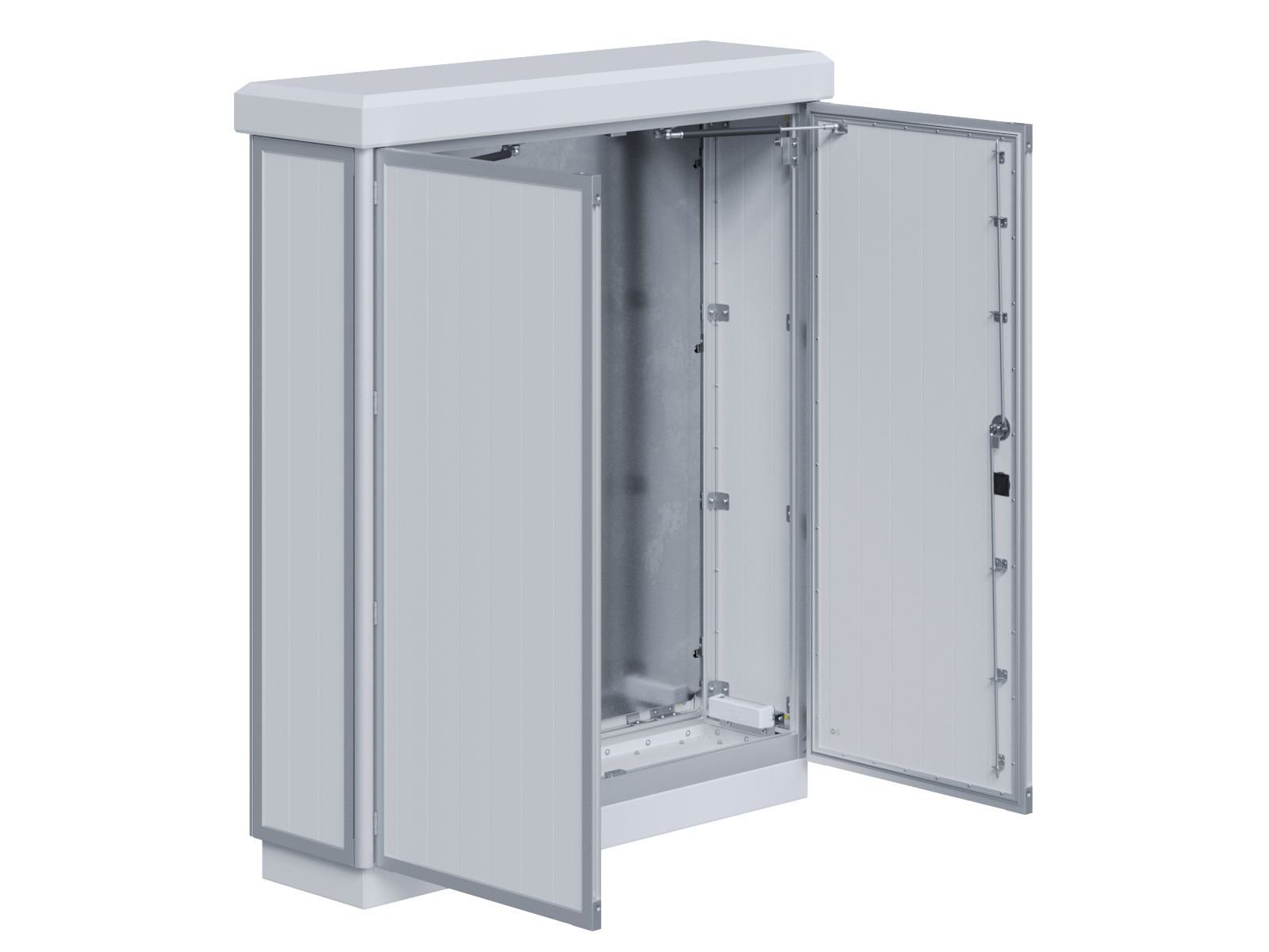 Outdoor-Schaltschrank aus doppelwandigen Aluminiumprofilen mit Schloß-Anschlagtür