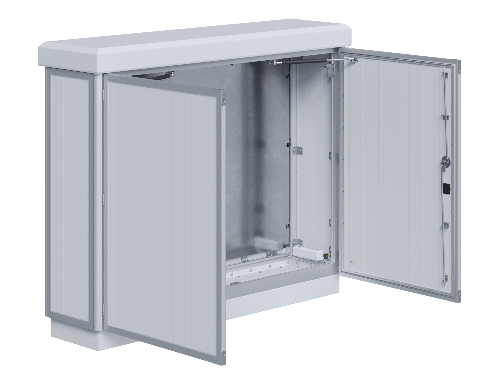 Outdoor-Schaltschrank aus doppelwandigen Aluminiumprofilen mit Schloß-Anschlagtür